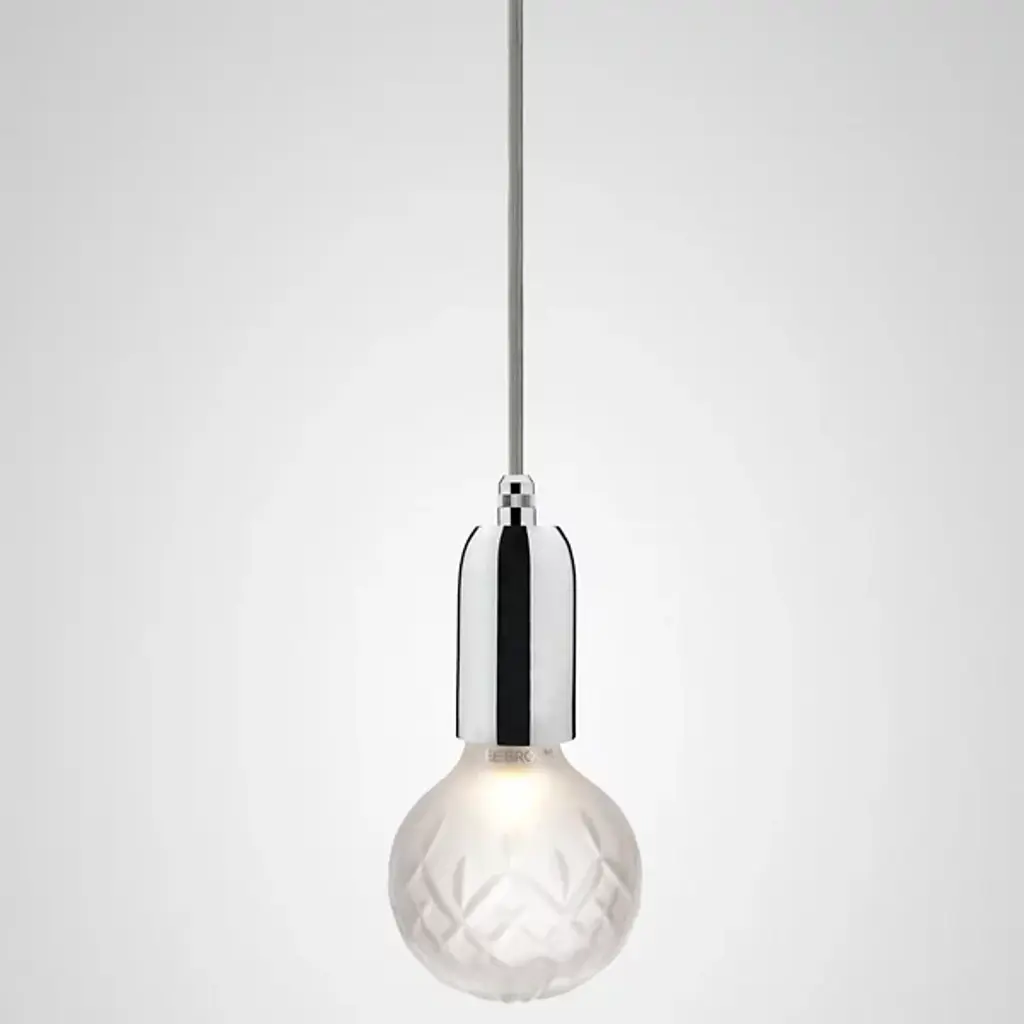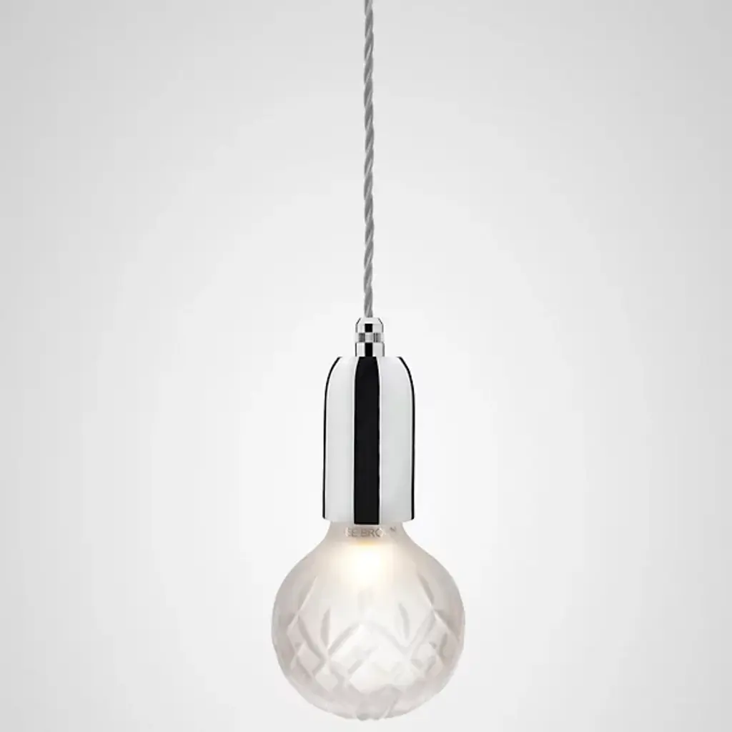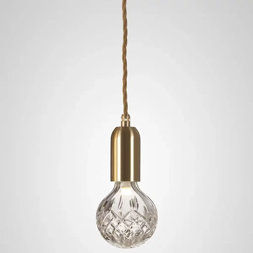 Delicately handblown and decoratively hand-cut, the Lee Broom Crystal Bulb LED Mini Pendant extends and elevates a centuries-old tradition of cut crystal craftsmanship. The bulb - winner of a 2012 British Design Award - features a hand-carved vintage-inspired pattern that echoes those found on whiskey glasses and decanters of yore. Oh, and an etched Lee Broom logo. Likewise, the industrially informed Brushed Brass pendant fitting is engraved with the Lee Broom crest, and is suspended from a Gold silken fabric cord. Please note that the cord is actually round, not twisted as shown in accompanying images.