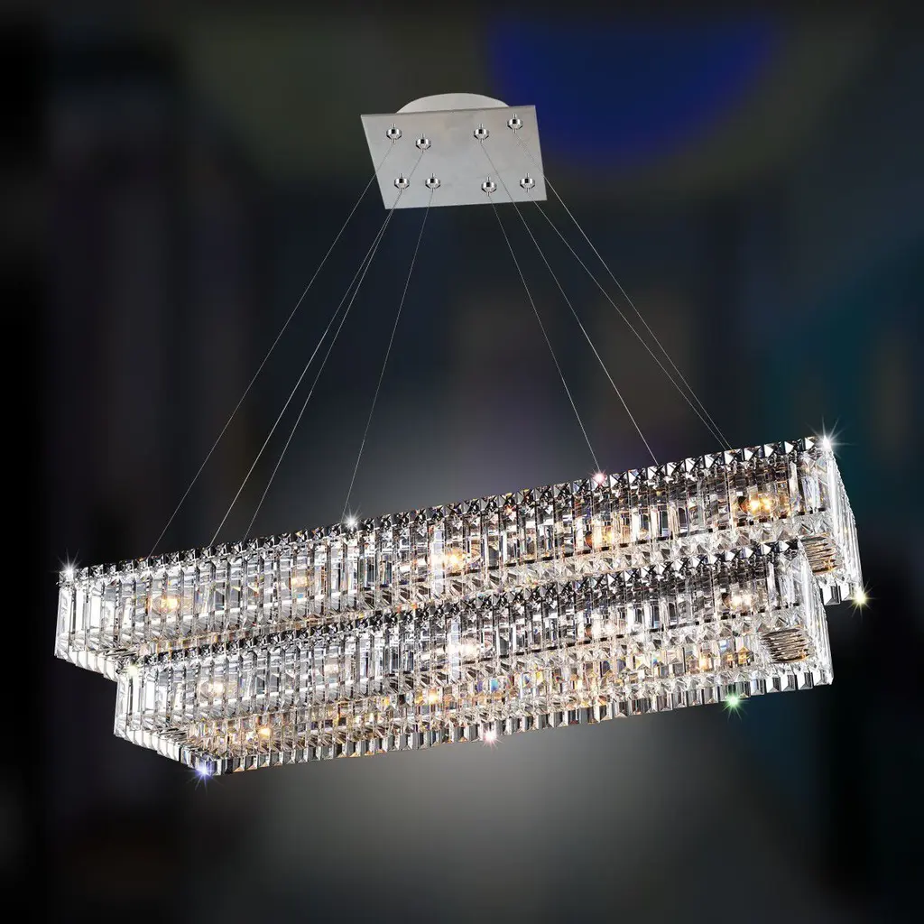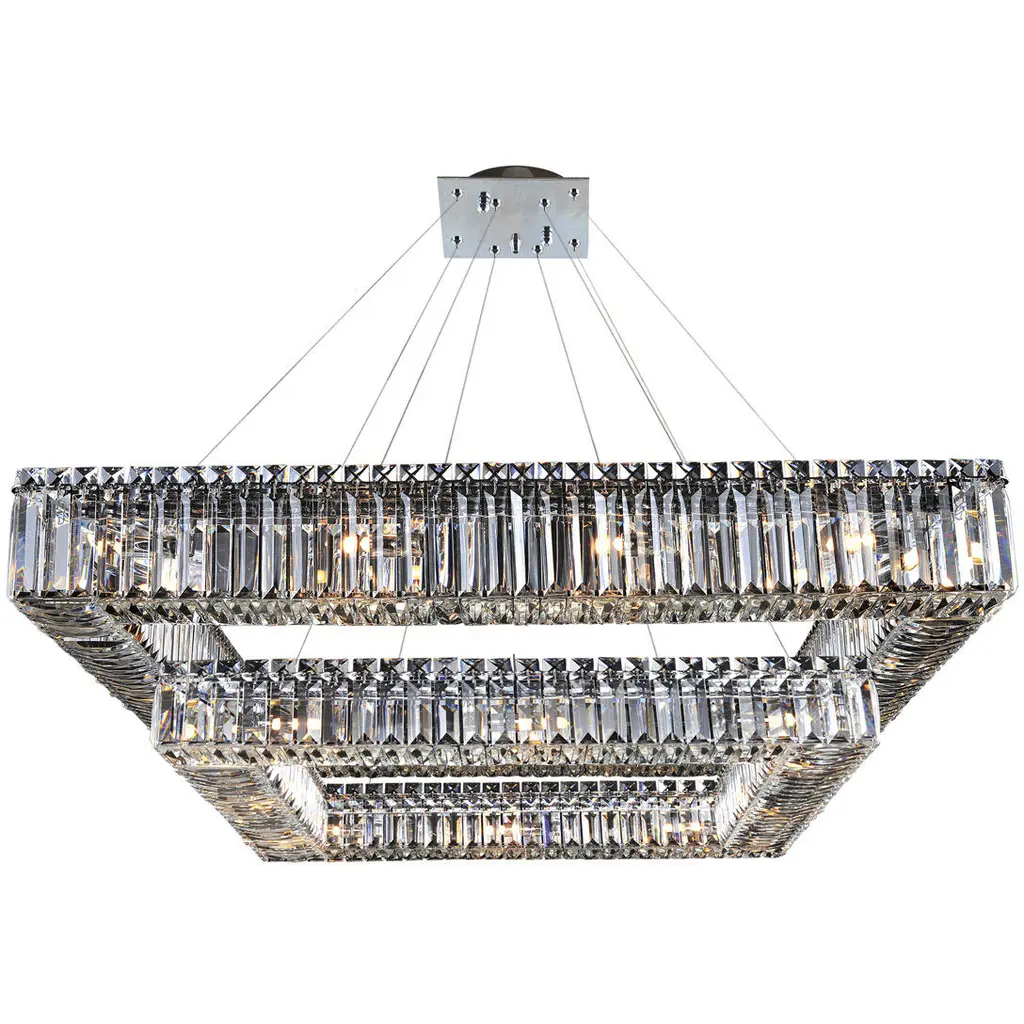 Bring the decadence and style of the art deco era to your home decor with the Crystal Enchantment Semi-Flushmount by Fine Art Lamps. A dazzling piece with sharp lines and clean metal, this fixture features a square-shaped frame made of sleek metal beams. Multi-faceted crystal panels line the center of the frames, varying in length and direction to create a dimensional shade that captures and refracts light in every direction. Its incandescent lamping offers a warm glow to the room, enhancing the fixture’s unique aesthetic.