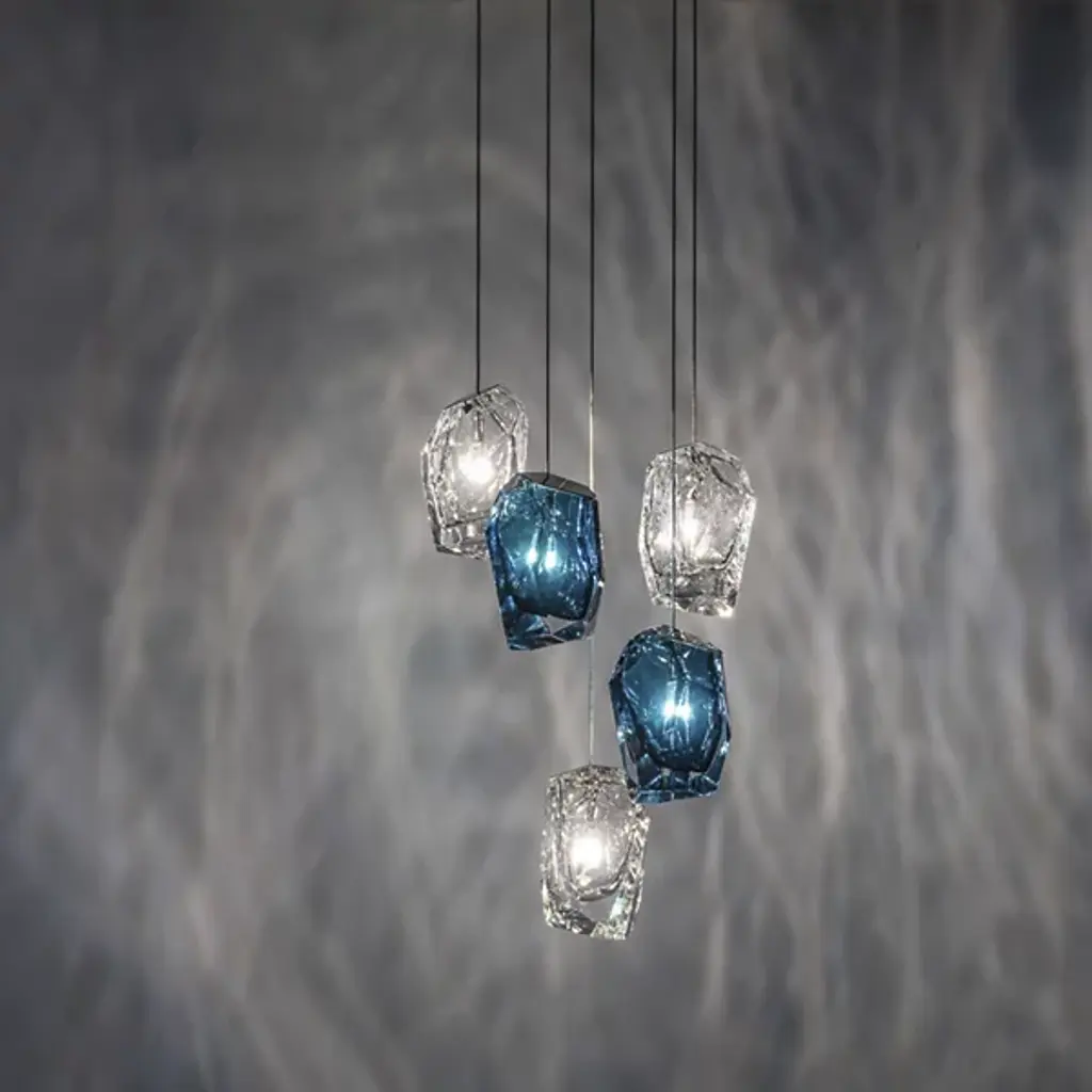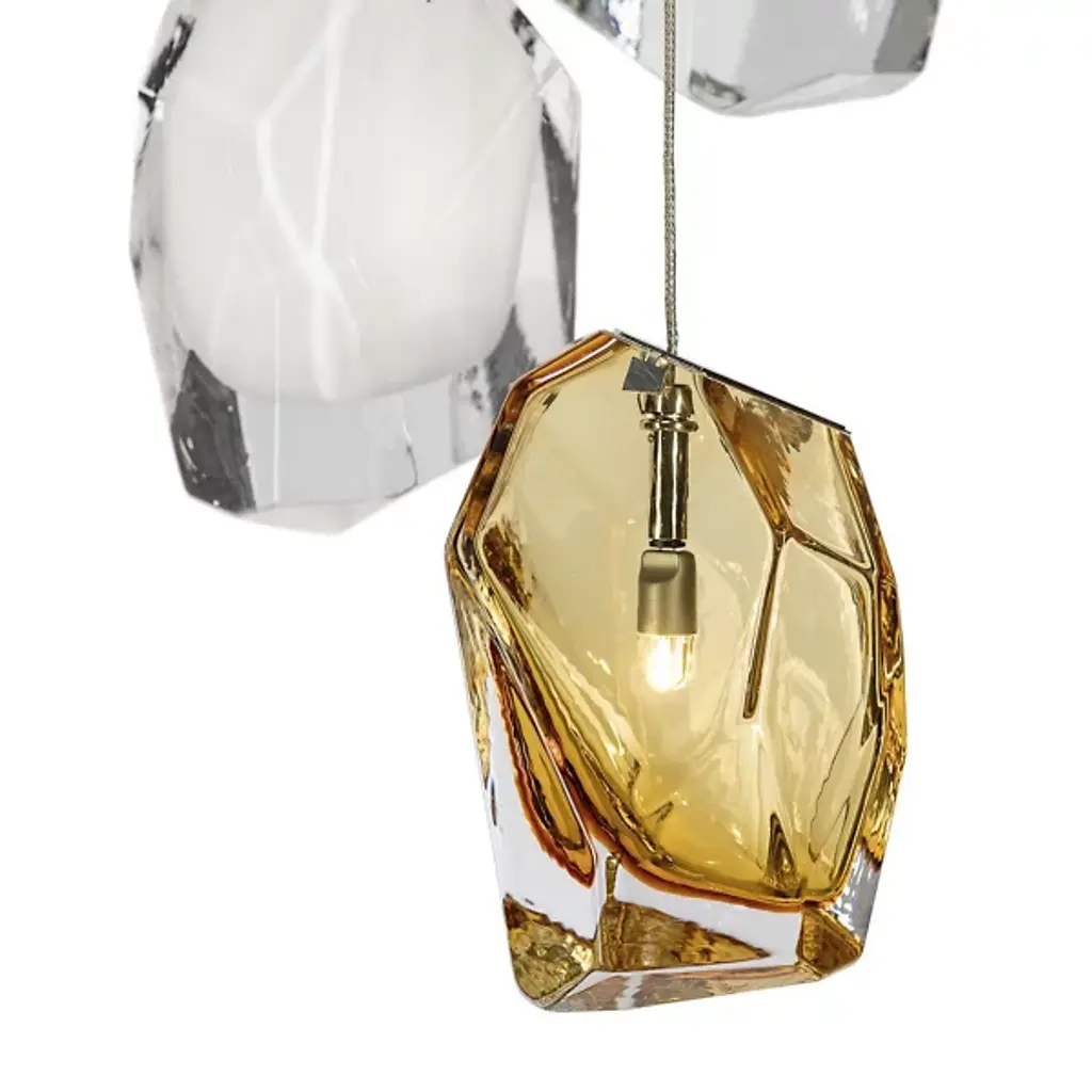 The Crystal Rock Multi-Light Pendant from Lasvit adds glittering artistry to inside spaces. An Arik Levy design drawing on his multifaceted experience as a designer, artist, technician, filmmaker, and more, this piece presents the same multifaceted character. Starting with a stepped, abstract canopy that echoes its surroundings, it extends thin cables to LED lamping set within smoothly-polished, abstractly-cut shades of crystal glass for a smooth, sci-fi flair that gives a glittering performance.