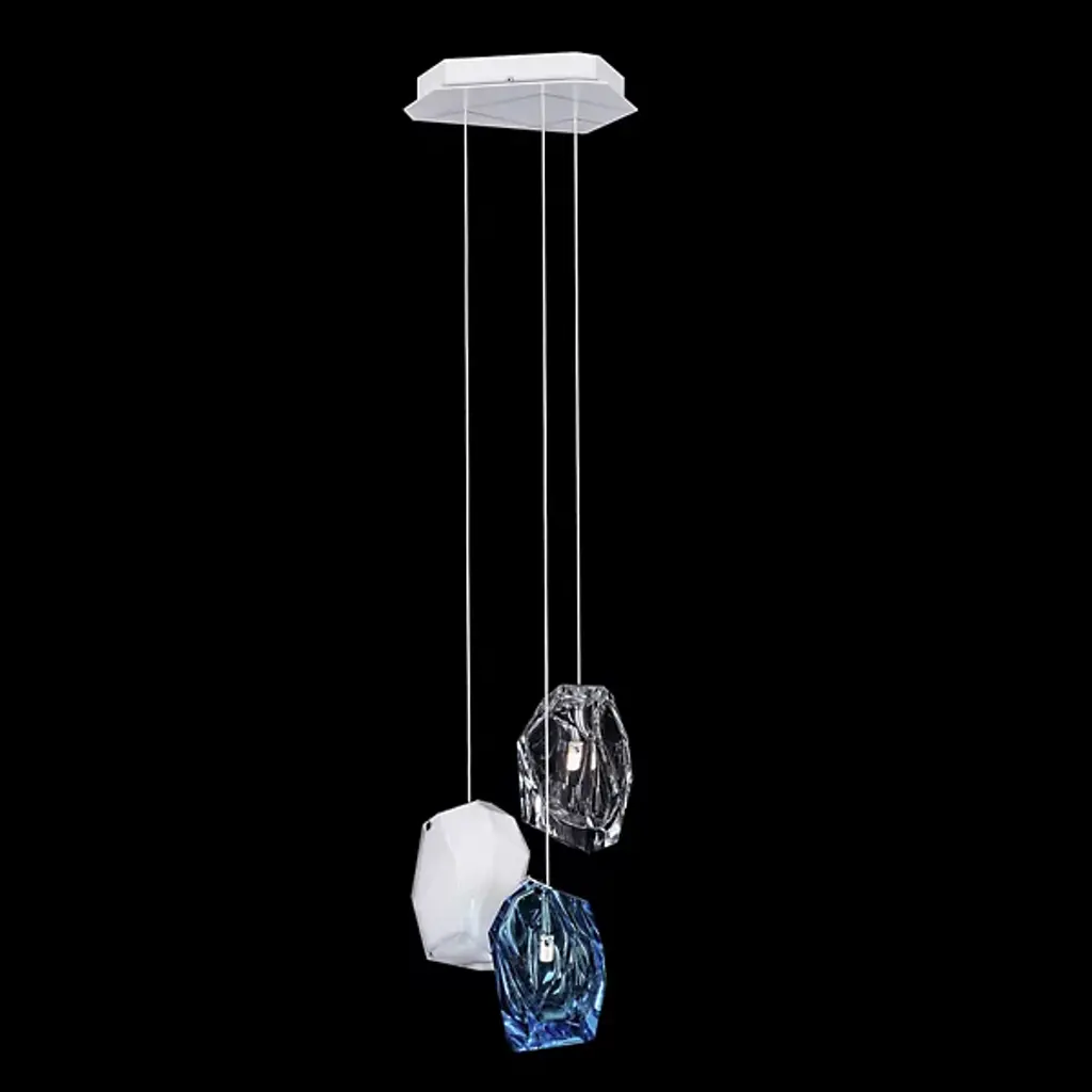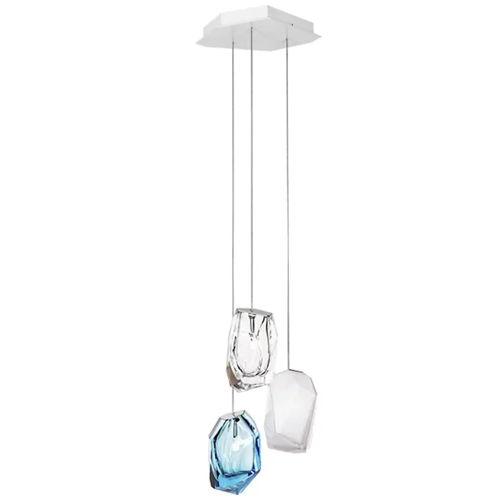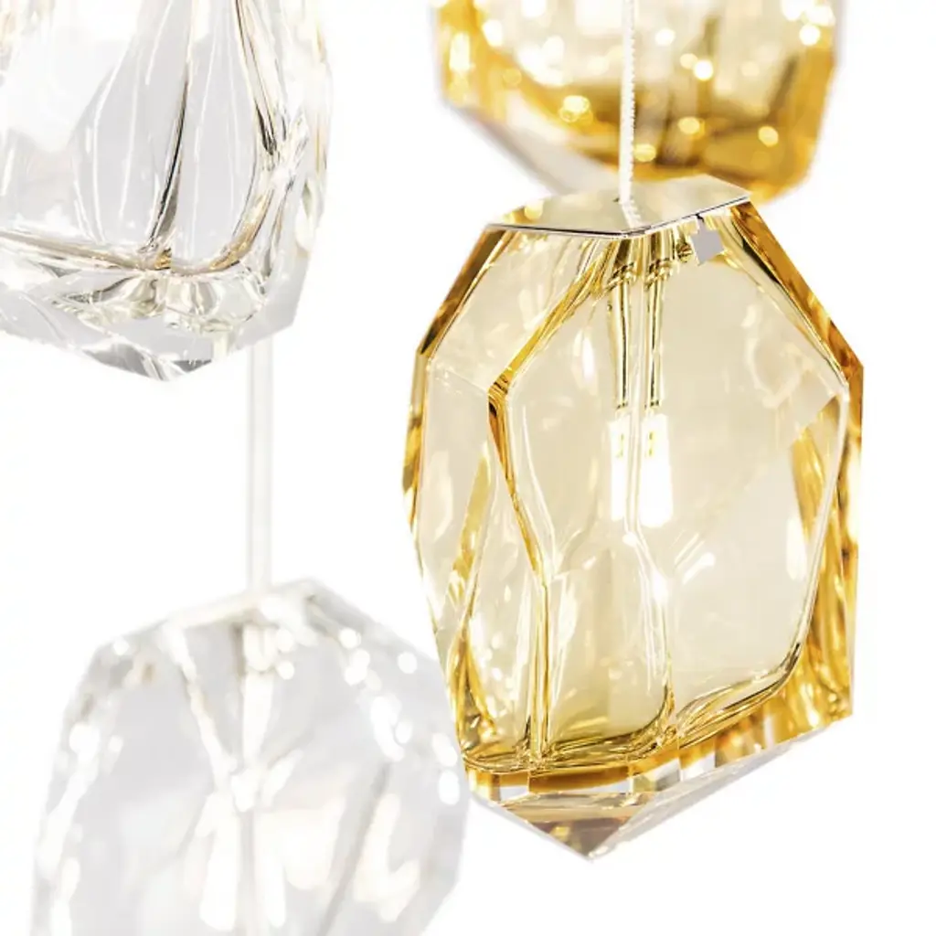 The Crystal Rock Multi-Light Pendant from Lasvit adds glittering artistry to inside spaces. An Arik Levy design drawing on his multifaceted experience as a designer, artist, technician, filmmaker, and more, this piece presents the same multifaceted character. Starting with a stepped, abstract canopy that echoes its surroundings, it extends thin cables to LED lamping set within smoothly-polished, abstractly-cut shades of crystal glass for a smooth, sci-fi flair that gives a glittering performance.