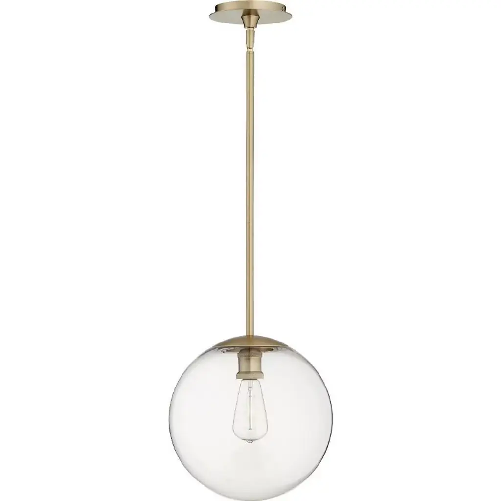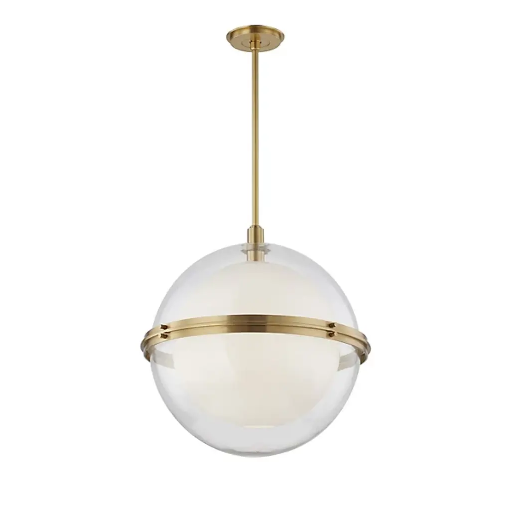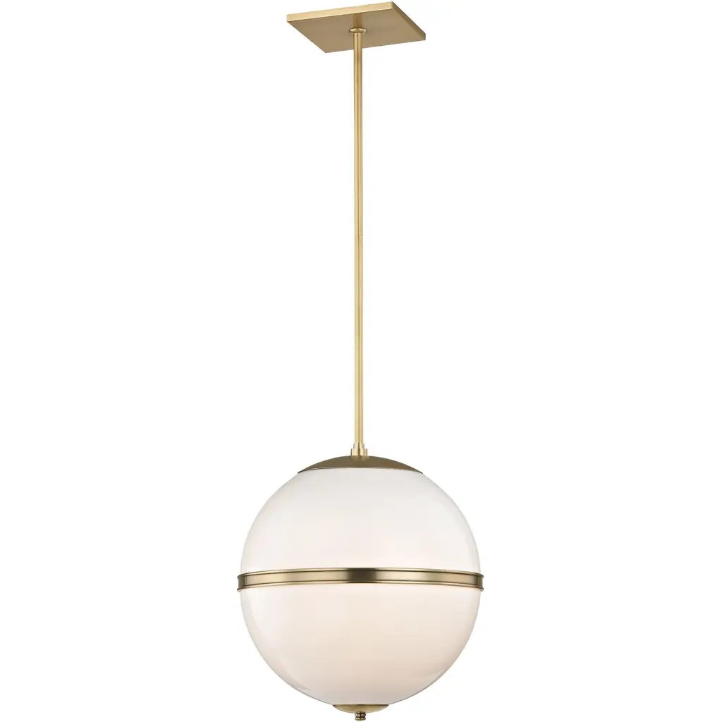 Less is more with the sleek minimalist Truax collection. Designed by Brian Patrick Flynn for use in both traditional and modern spaces, the Truax Collection offers a transitional take on the midcentury modern globe fixture. Stylish and modern, the clean lines and unadorned design bring a timeless appeal to any interior space. Truax collection features a versatile modern / contemporary design. / Characterized by clean lines, sculptural forms, and warm metallic or wood accents, often featuring bold shapes and playful pops of color for a retro yet timeless appeal. / Mid-century white glass sphere. / Aged Brass metal finish is treated to look aged and have a rich hue. This shade adds a luxurious touch to any room and is perfect for modern and contemporary settings. / 16"W x 18"H x 16"D / 4 light 60- watt, E12 Candelabra base / Steel + Lucite / Authorized for use in dry interior locations. Meets United States UL Underwriters Laboratories Product Safety Standards. / The Truax mixes interest