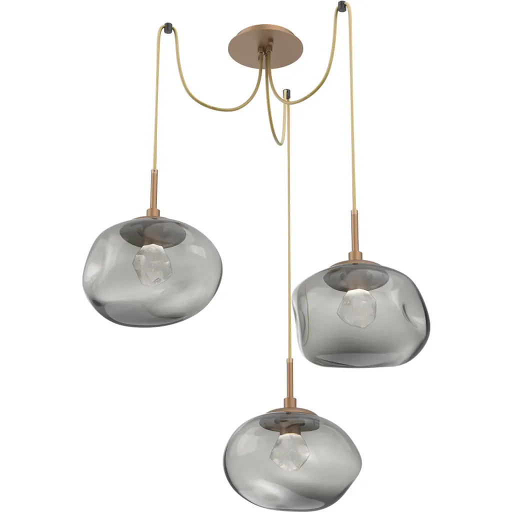 Make a pleasing addition to inside ceiling spaces with the Cubie 3-Light Multi-Light Pendant from Viso. A daring fixture retained by a stepped, circular ceiling mount, it extends a set of slender, proprietary cables to bright lamping below. The lamping is easy to suspend at a variety of heights, while curving shades of translucent, hand-molded crystal extend around each lamp, reducing bright glare to a pleasing glow that extends out in all directions.