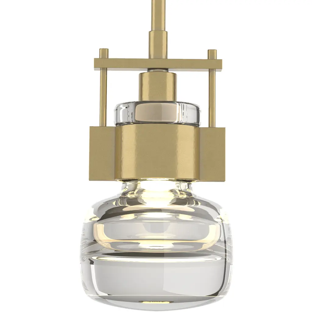 The minimalism of our Cuff Pendant's design puts the focus on two strong and well-crafted components - the heavy steel cuff and the thick, blown-glass captured within the cuff. Created by artisans in Vermont, each piece is unique.