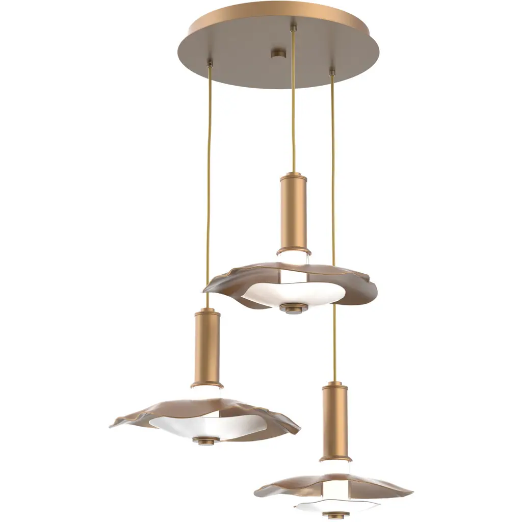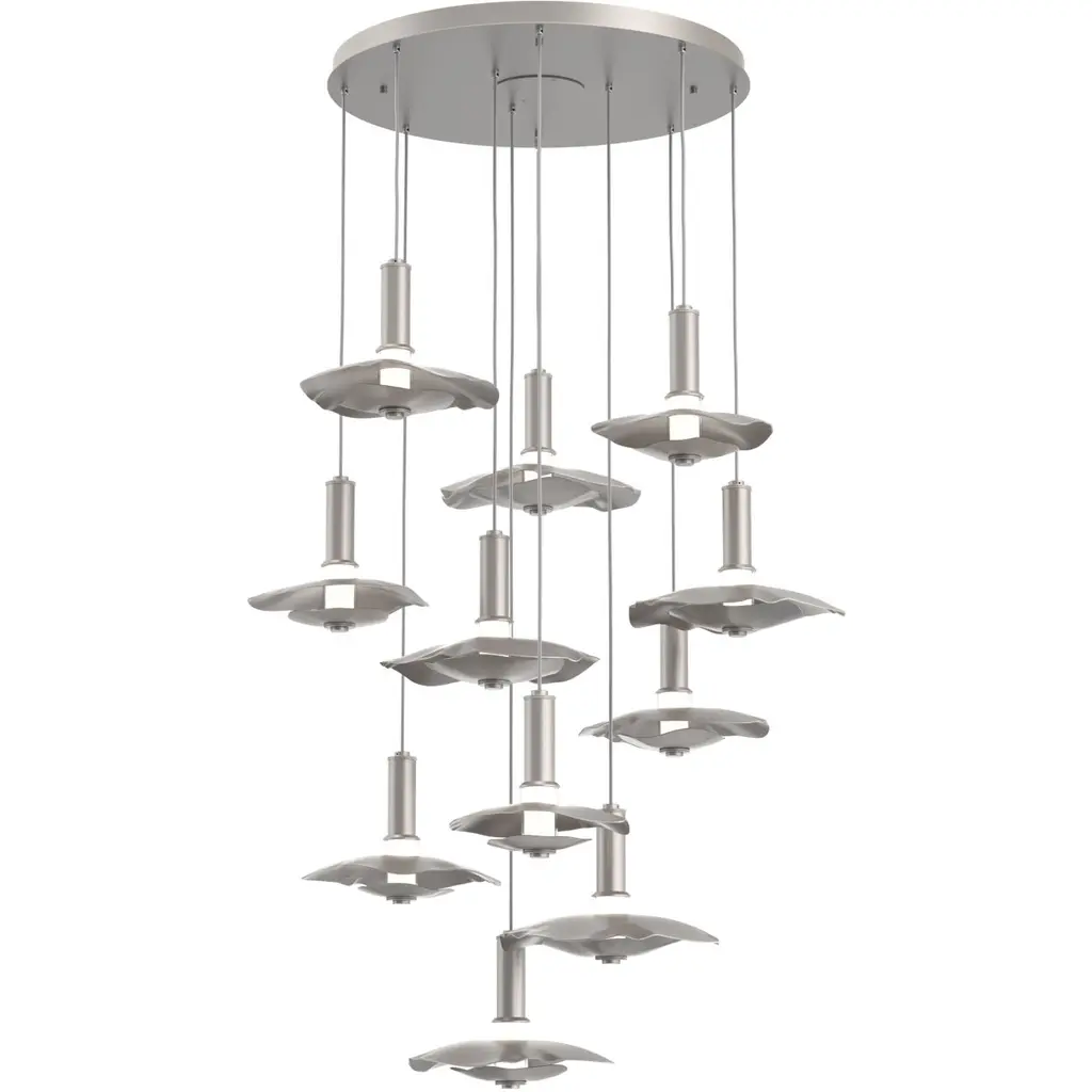 Undulating layers of precision-crafted metal and textured kiln-fused glass bring a playful sophistication to this modern round multi-pendant chandelier style. Choose an all-metal look with either a single or two-tone finish, or pair metal with a glass diffuser.