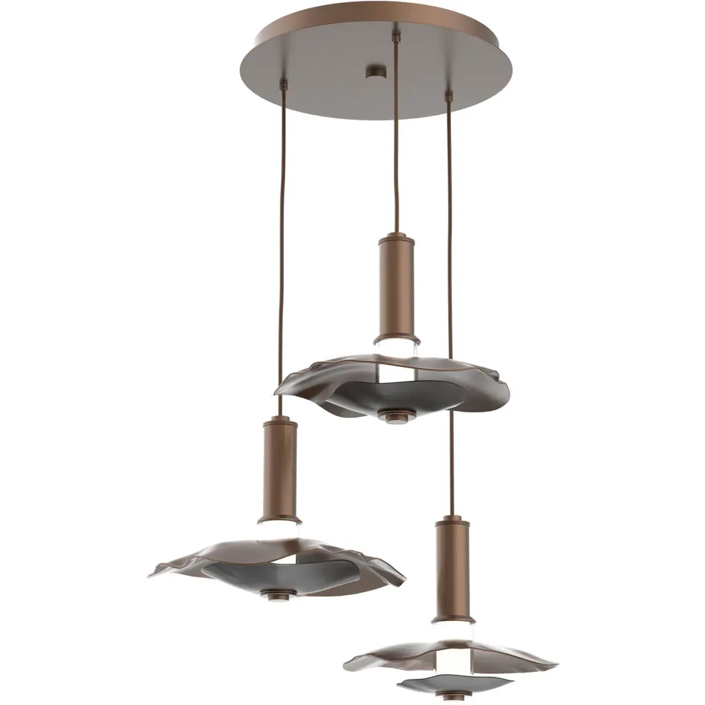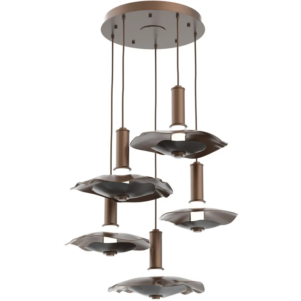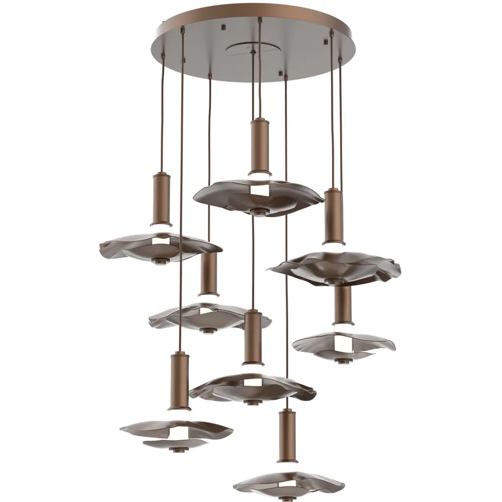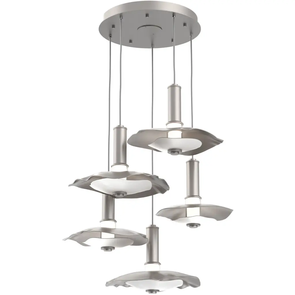Undulating layers of precision-crafted metal and textured kiln-fused glass bring a playful sophistication to this modern round multi-pendant chandelier style. Choose an all-metal look with either a single or two-tone finish, or pair metal with a glass diffuser.