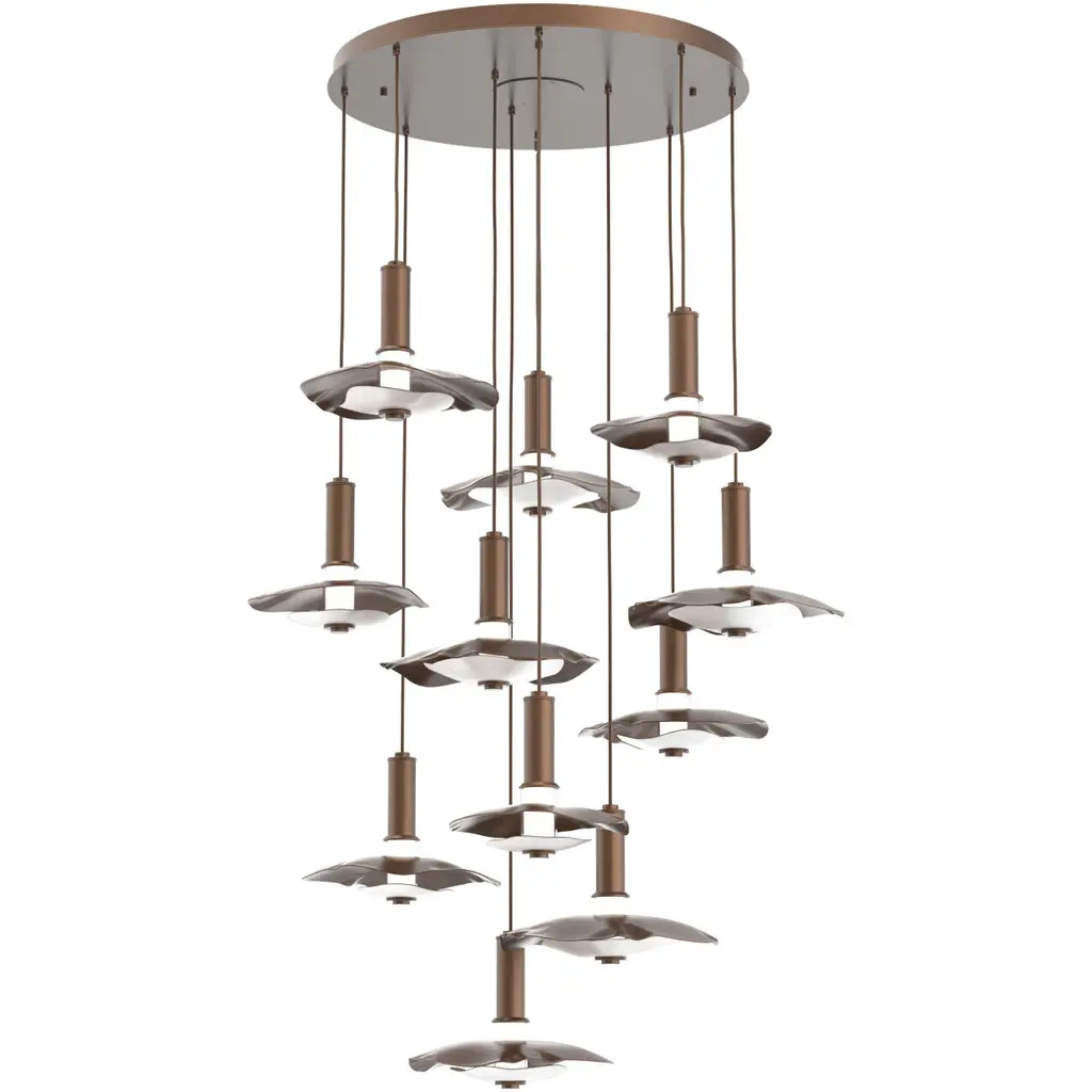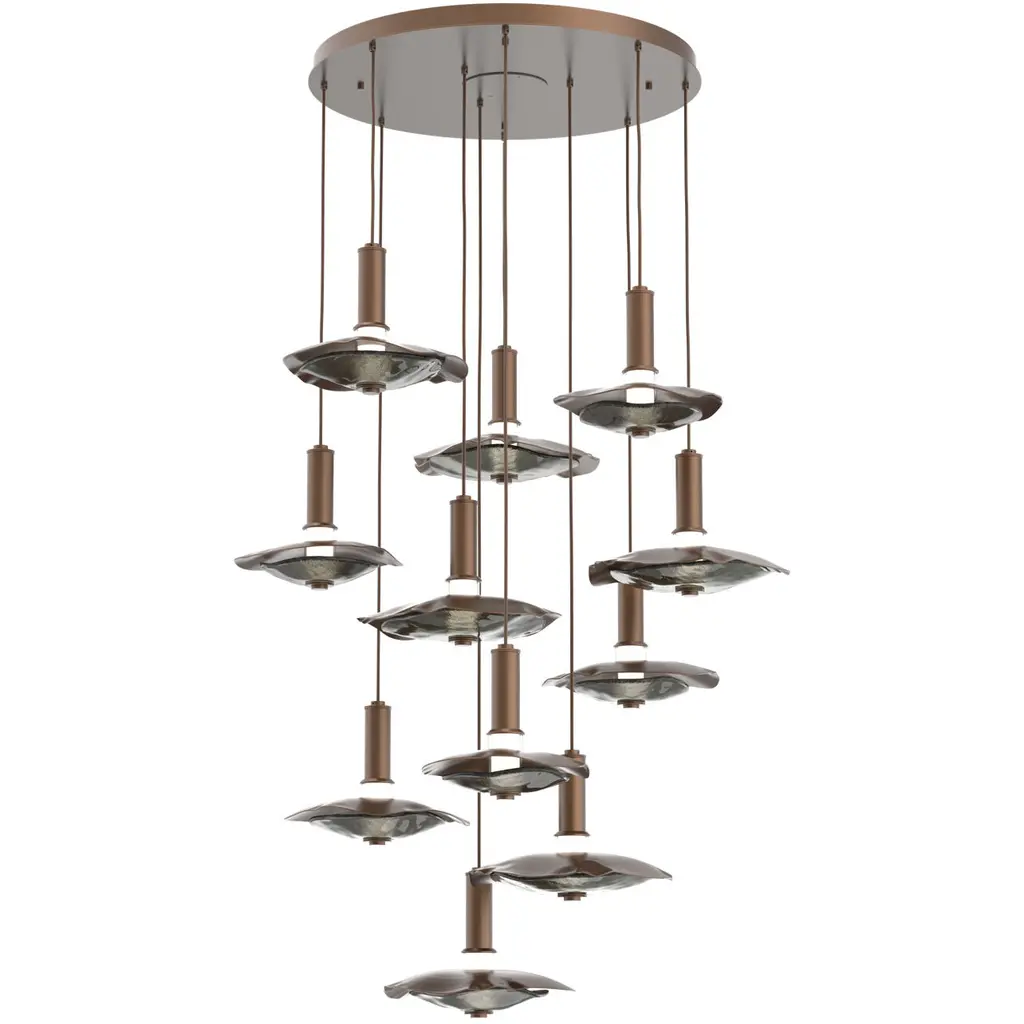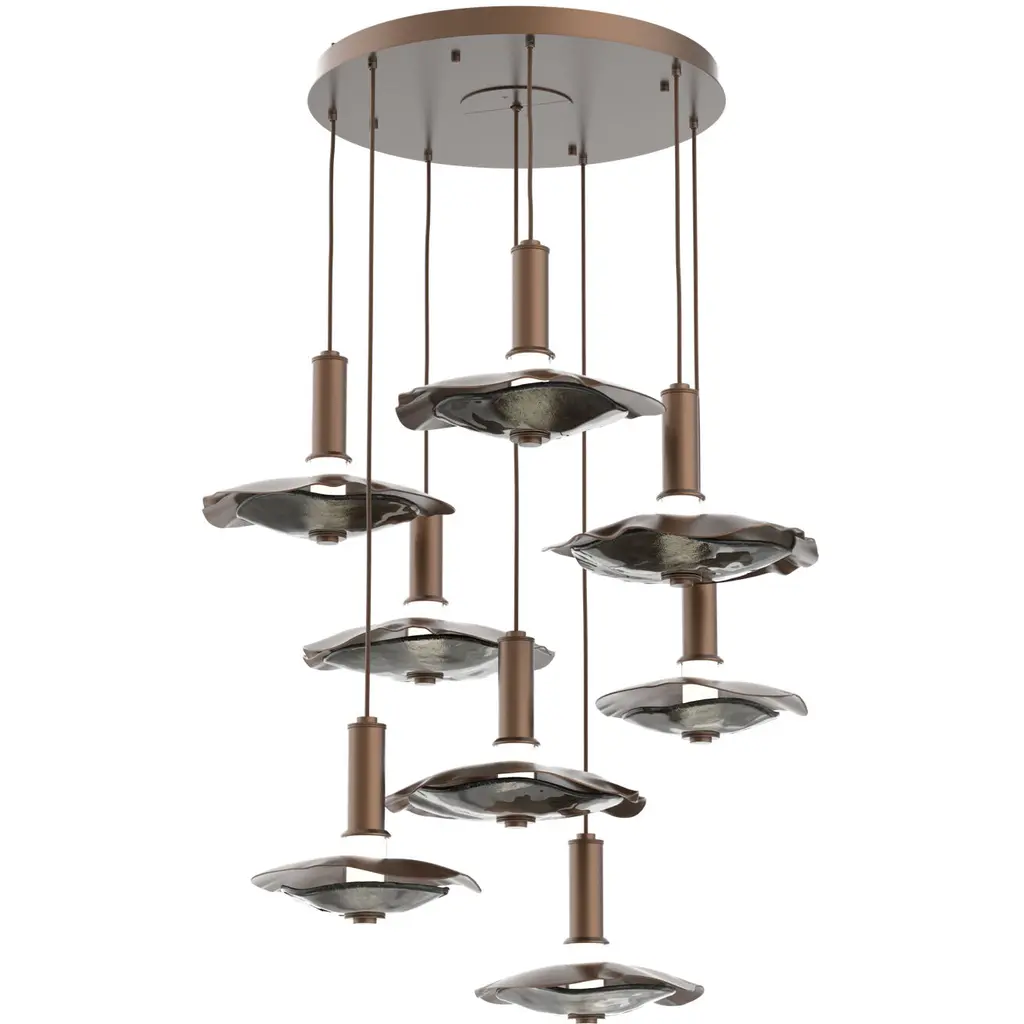 Undulating layers of precision-crafted metal and textured kiln-fused glass bring a playful sophistication to this modern round multi-pendant chandelier style. Choose an all-metal look with either a single or two-tone finish, or pair metal with a glass diffuser.