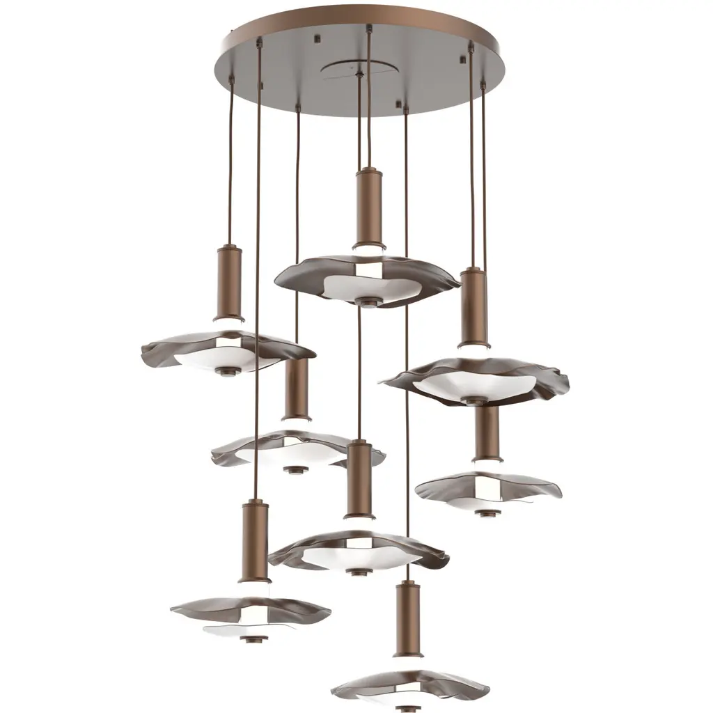 Undulating layers of precision-crafted metal and textured kiln-fused glass bring a playful sophistication to this modern round multi-pendant chandelier style. Choose an all-metal look with either a single or two-tone finish, or pair metal with a glass diffuser.