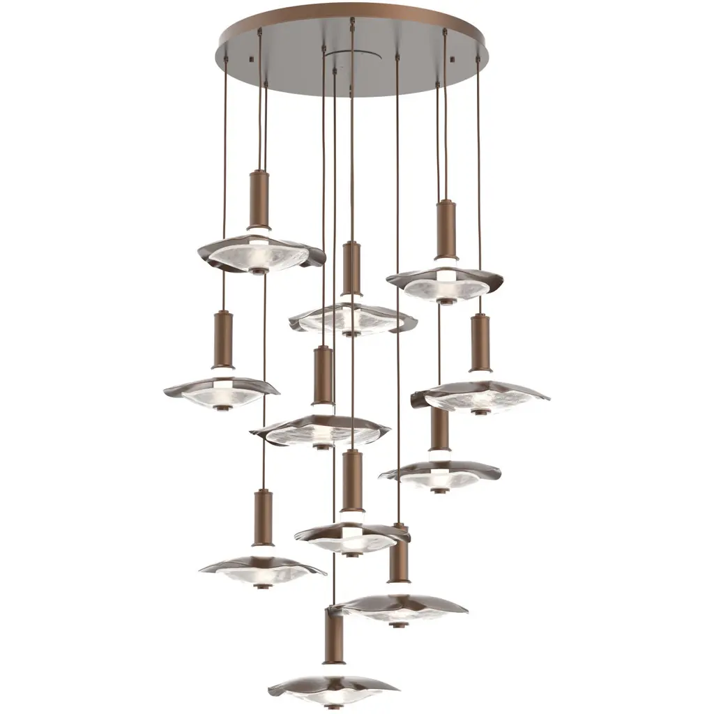 Undulating layers of precision-crafted metal and textured kiln-fused glass bring a playful sophistication to this modern round multi-pendant chandelier style. Choose an all-metal look with either a single or two-tone finish, or pair metal with a glass diffuser.
