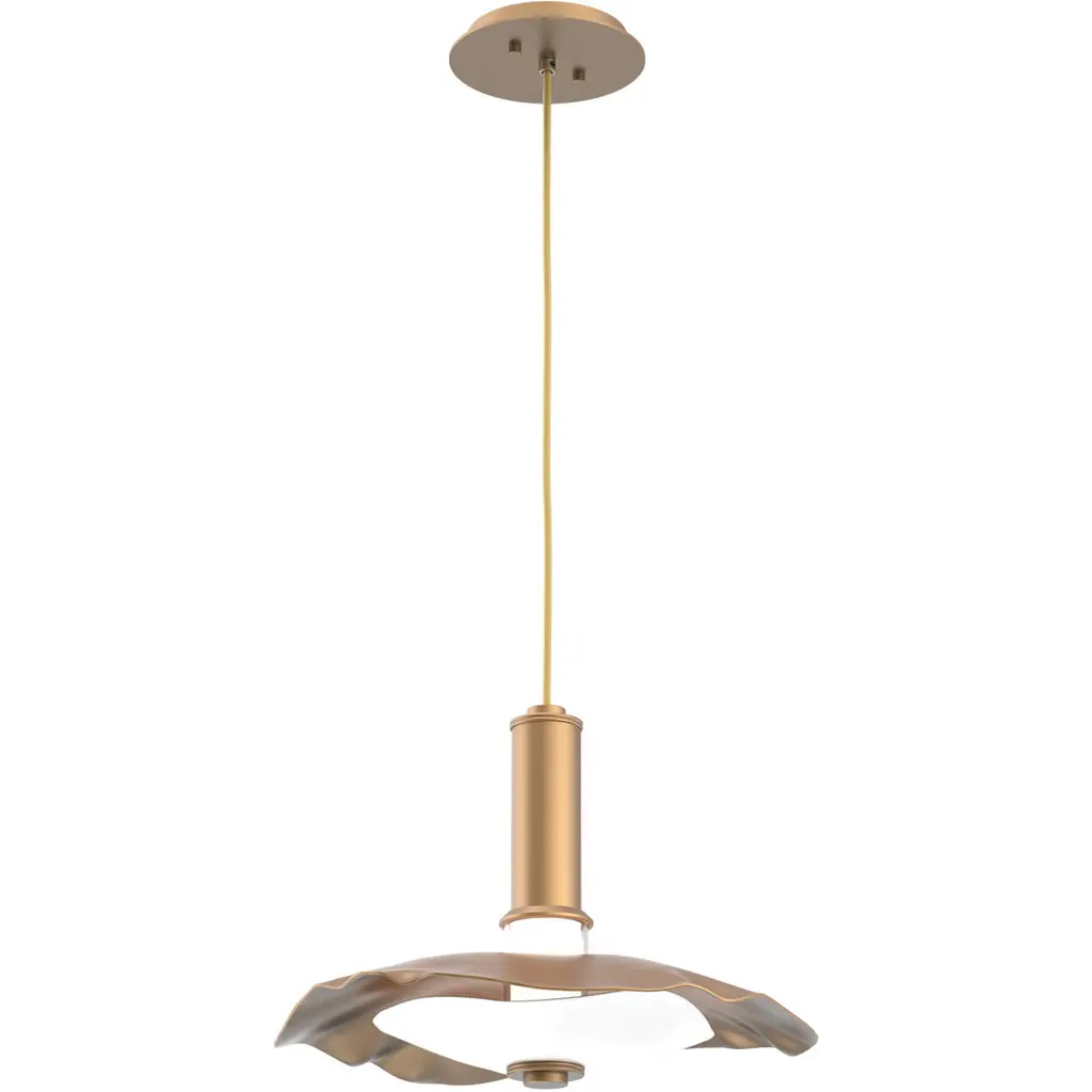 Undulating layers of precision-crafted metal and textured kiln-fused glass bring a playful sophistication to this modern pendant style. Choose an all-metal look with either a single or two-tone finish, or pair metal with a glass diffuser.
