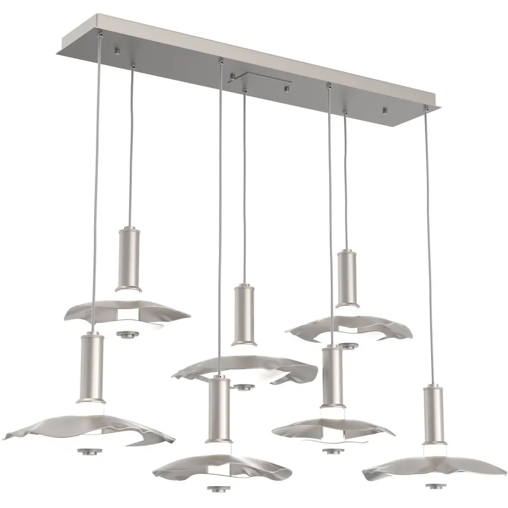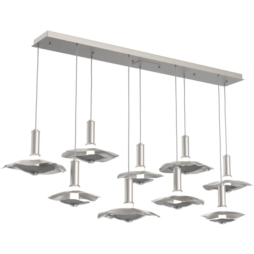 Undulating layers of precision-crafted metal and textured kiln-fused glass bring a playful sophistication to this modern linear multi-pendant chandelier style. Choose an all-metal look with either a single or two-tone finish, or pair metal with a glass diffuser.