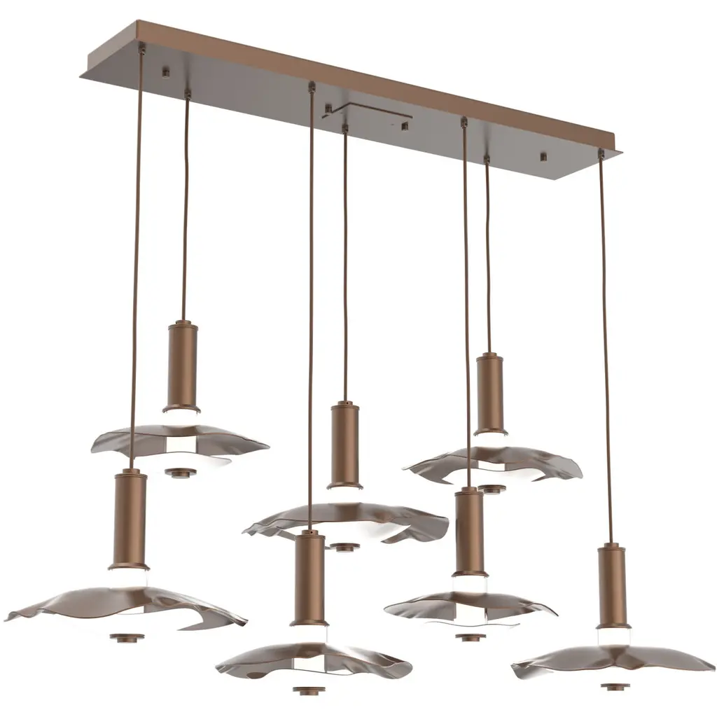 Undulating layers of precision-crafted metal and textured kiln-fused glass bring a playful sophistication to this modern linear multi-pendant chandelier style. Choose an all-metal look with either a single or two-tone finish, or pair metal with a glass diffuser.