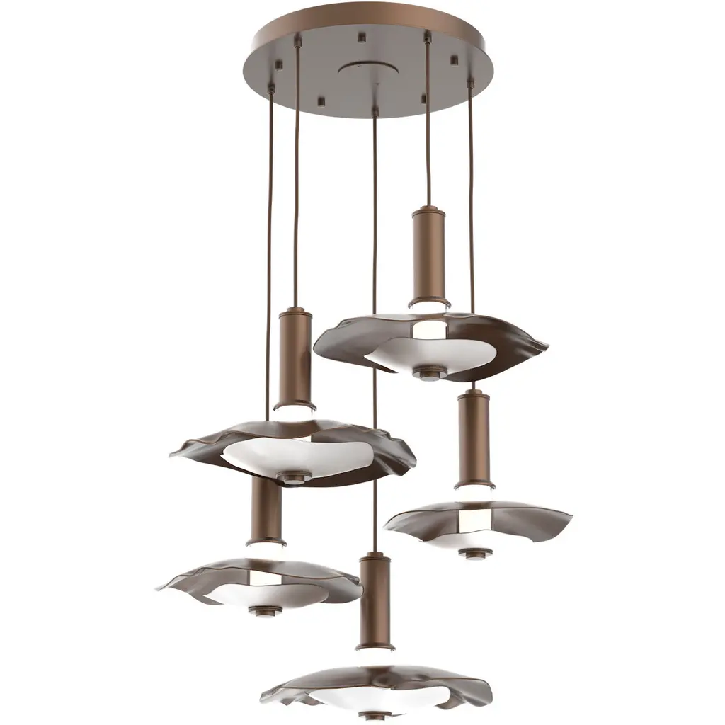 Undulating layers of precision-crafted metal and textured kiln-fused glass bring a playful sophistication to this modern linear multi-pendant chandelier style. Choose an all-metal look with either a single or two-tone finish, or pair metal with a glass diffuser.