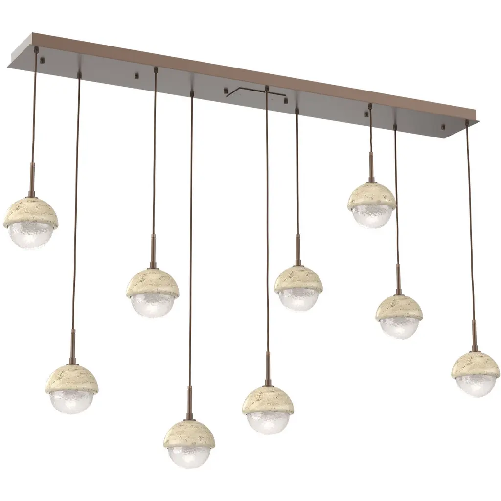 Cumulus Linear Multi-Pendant Ceiling Light In Burnished Bronze With Clear Granite Glass