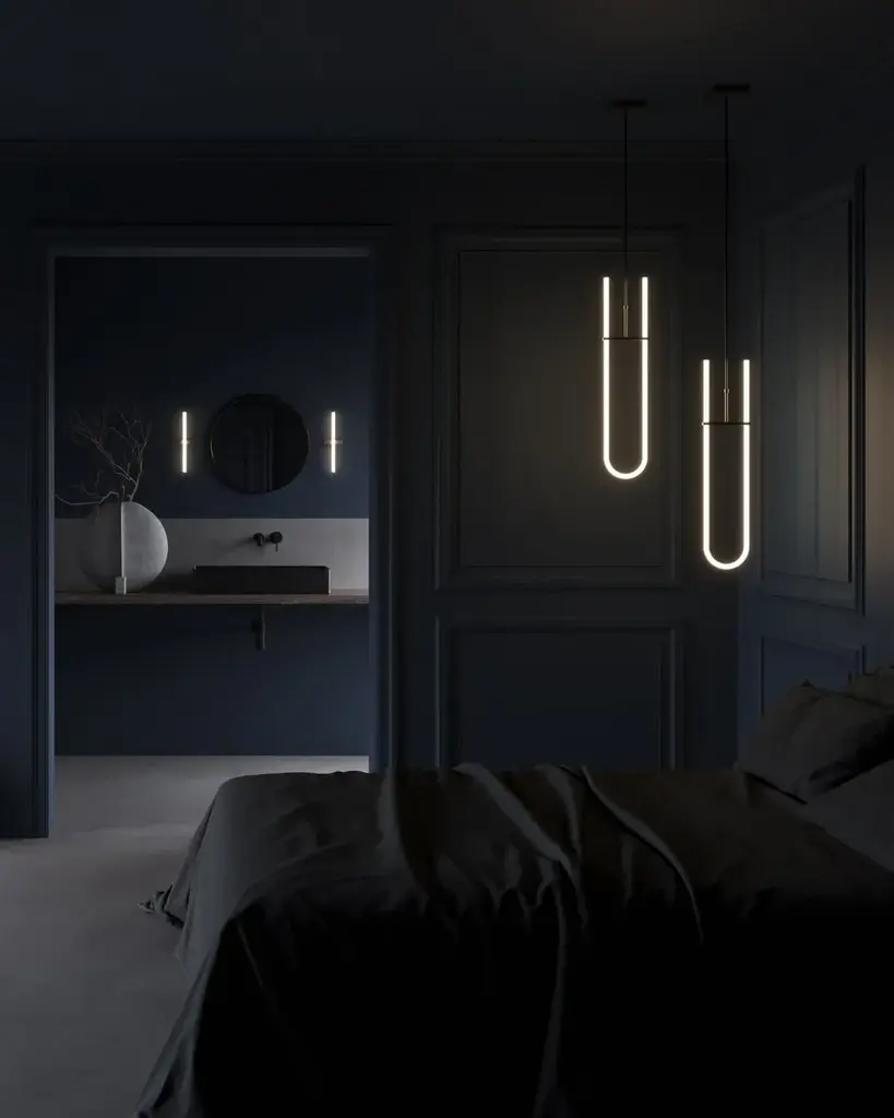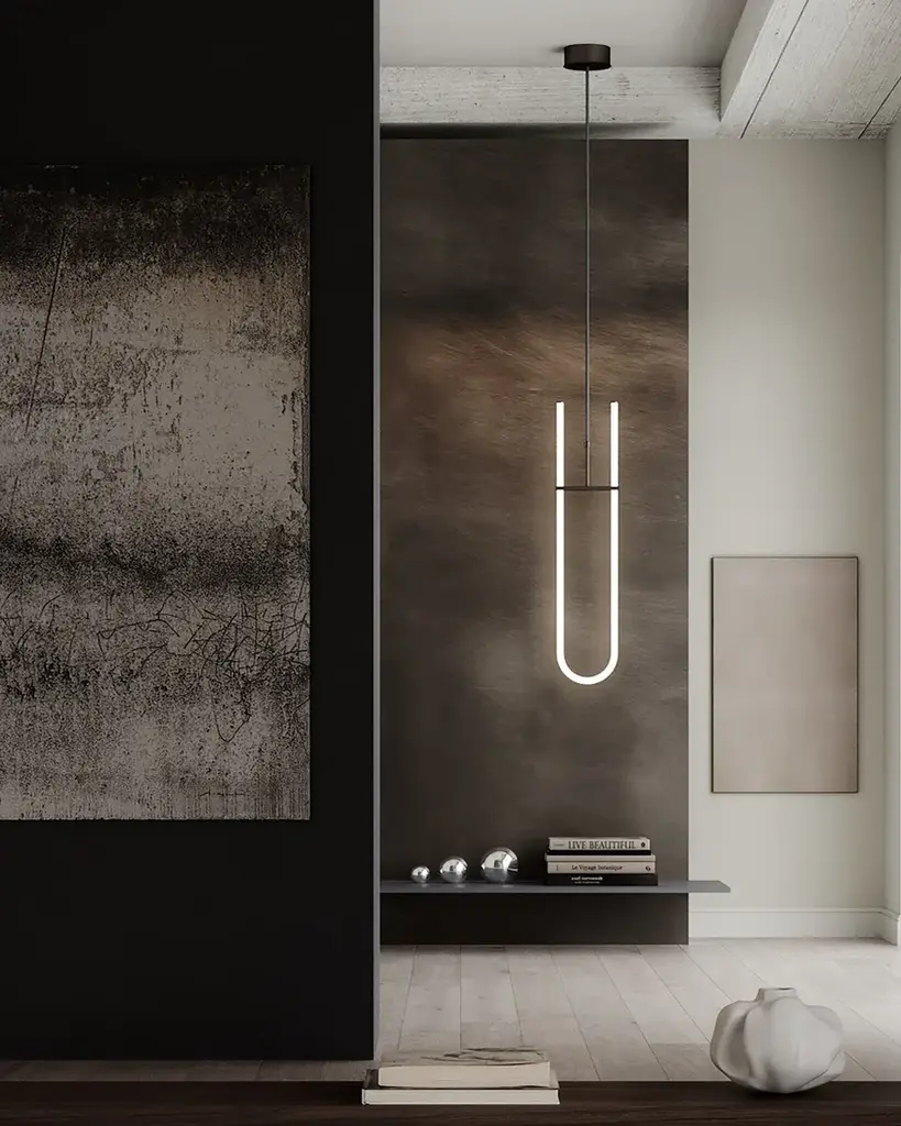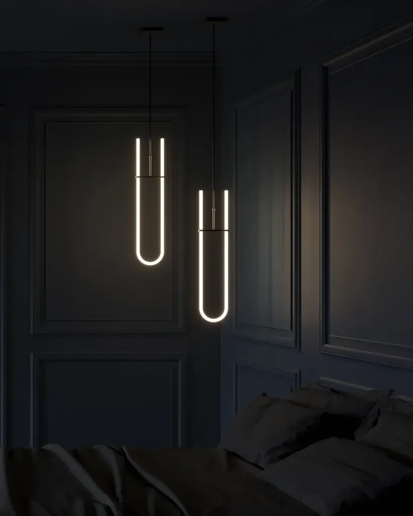 Curve Pendant Lamp is a pendant light featuring a white acrylic tube, housing an LED light source.