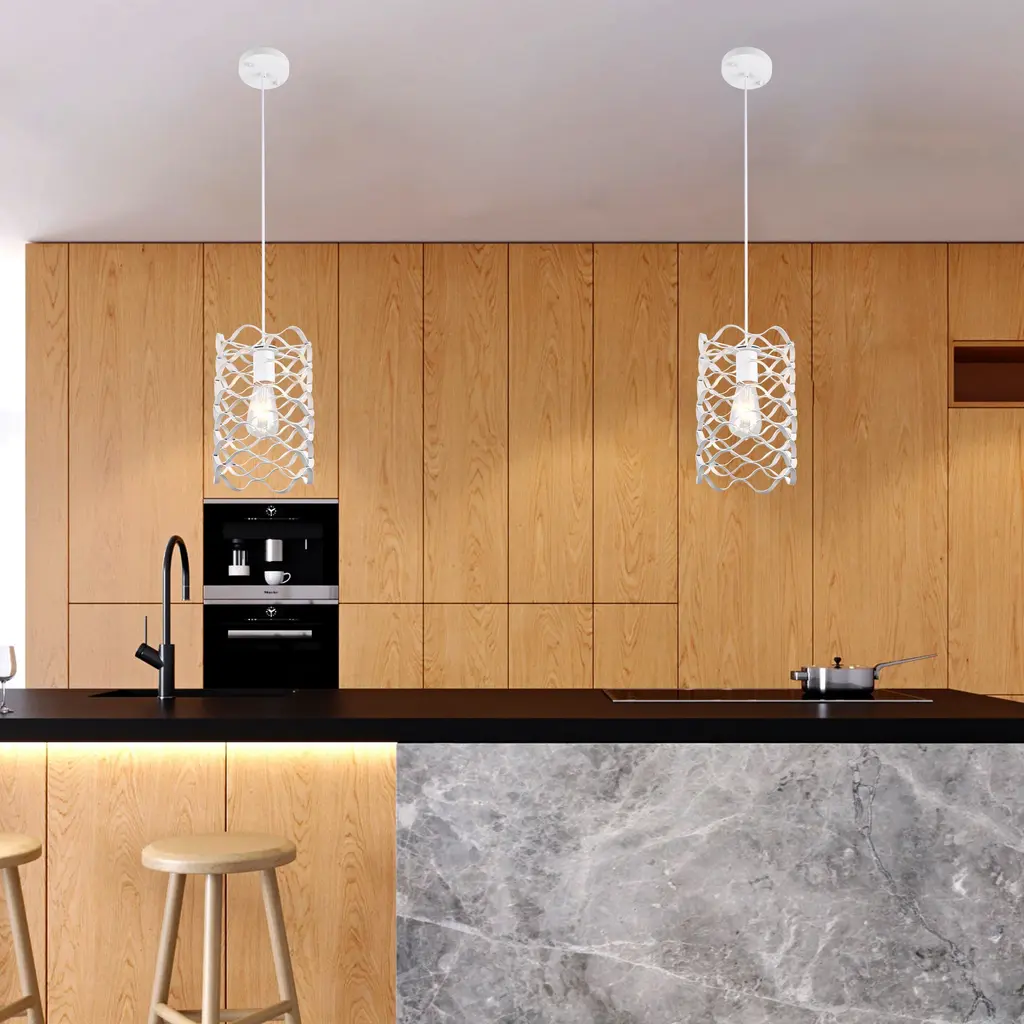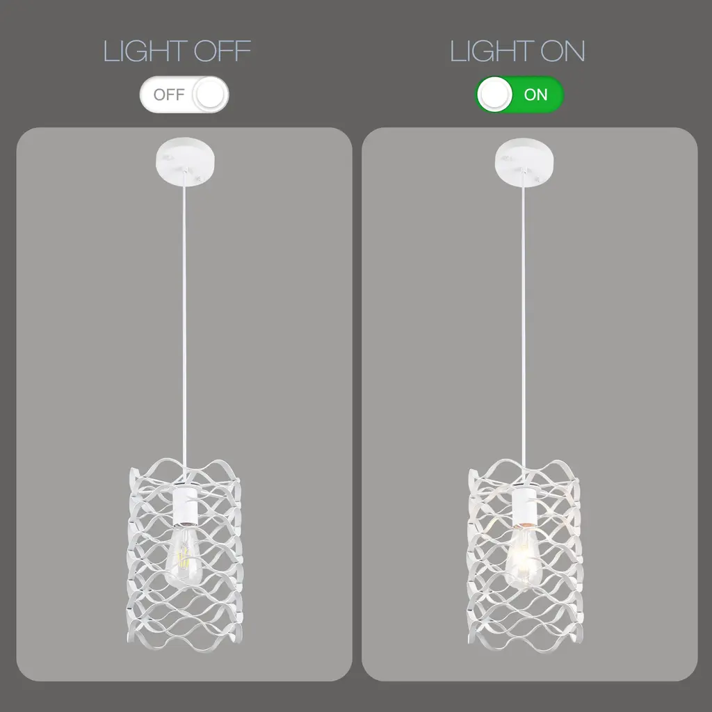 Elevate your kitchen island or dining area with the Elegant Matte White Industrial Wave Pendant Light. This stunning fixture combines a unique wave design with a sleek, matte white finish, adding a touch of modern sophistication to any space. Measuring 7 inches, this pendant light features an adjustable 70-inch hanging chain, allowing you to customize the height to suit your needs. The light is crafted from durable iron with a baked paint finish, ensuring longevity and style. It supports one E26 dimmable bulb, providing versatile lighting options for any occasion. Perfect for those seeking a blend of industrial charm and contemporary design, this pendant light is a statement piece that enhances your home's aesthetic. Dimension: More Info: