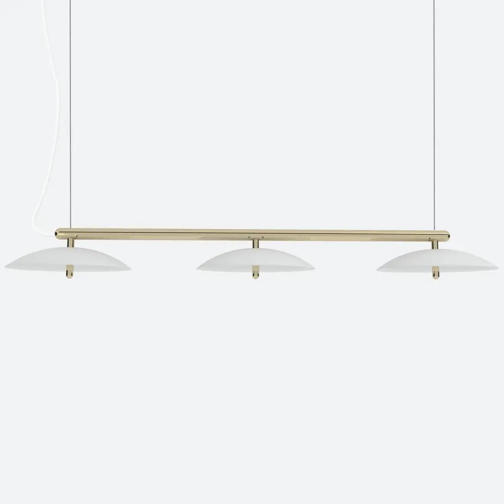 Price is for a signal linear pendant with white shade and nickel accents. This piece is customizable so we can also make the finishes per order to your spec. Lamping: G8 LED Bulbs (included)Canopy: White, 5in Diameter, .25in height6x G8 LED bulbs included (2 per shade)36w, 3600 Lumens, CRI 90+