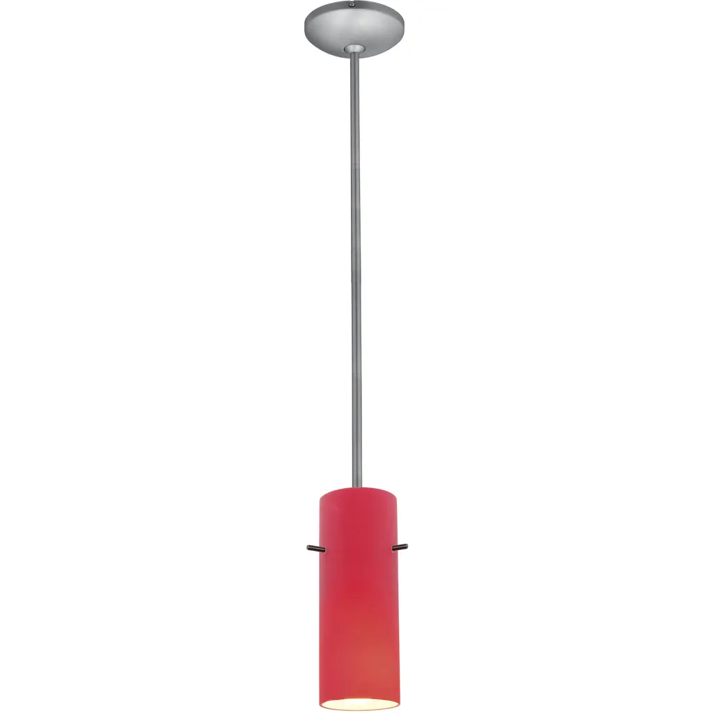 Cylinder 1 Light Brushed Steel Pendant Ceiling Light In Red, Cord