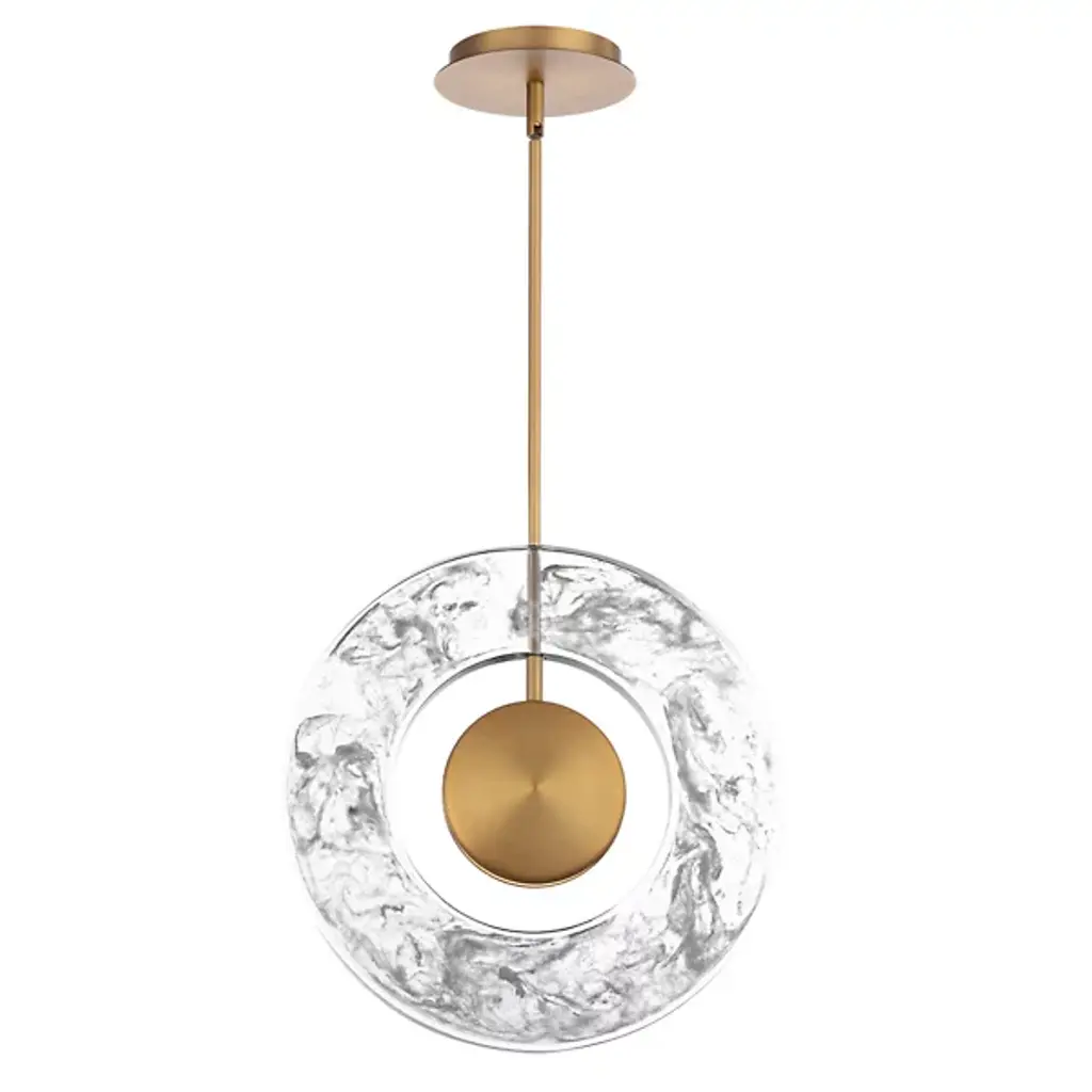 Aptly named, the Cymbal LED Pendant by Modern Forms features a slender stem that supports a smooth metal disk that is edge-lit to create the look of two cymbals held slightly apart from one another. A circular, artisan-crafted, milky acrylic frame surrounds this central light source, creating a cool, layered look that provides a space for energy-efficient light to playfully filter through. Dynamic in nature, the metal elements of this design are completed with a beautiful finish to give this piece an elegant, elevated feel.