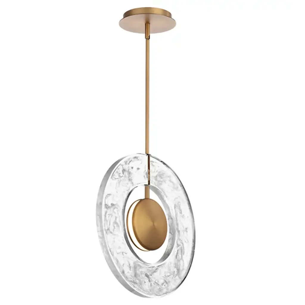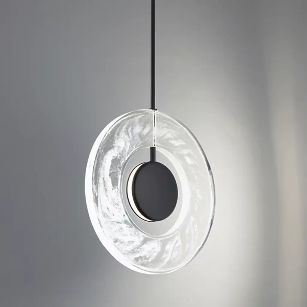 Aptly named, the Cymbal LED Pendant by Modern Forms features a slender stem that supports a smooth metal disk that is edge-lit to create the look of two cymbals held slightly apart from one another. A circular, artisan-crafted, milky acrylic frame surrounds this central light source, creating a cool, layered look that provides a space for energy-efficient light to playfully filter through. Dynamic in nature, the metal elements of this design are completed with a beautiful finish to give this piece an elegant, elevated feel.