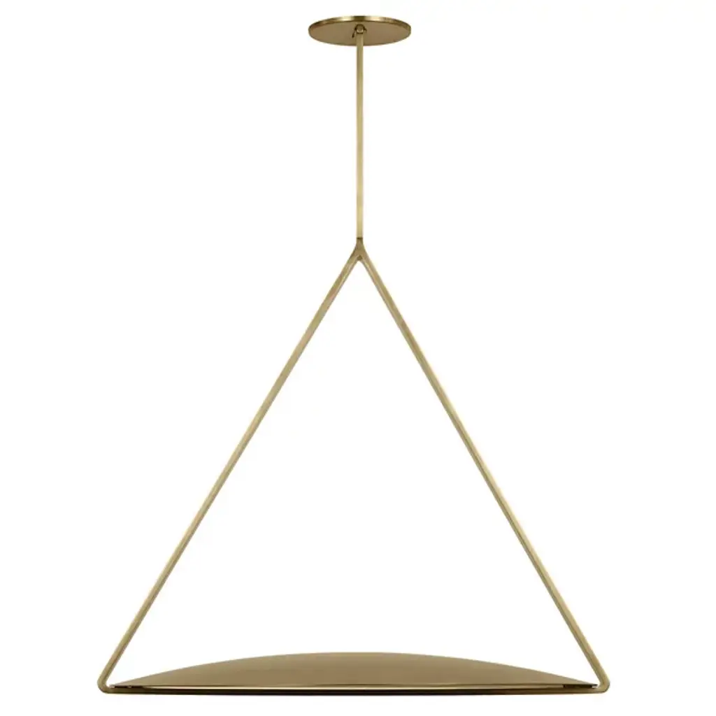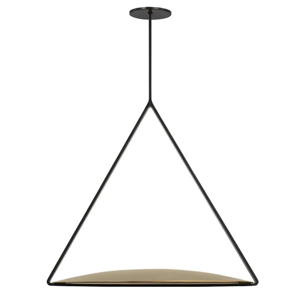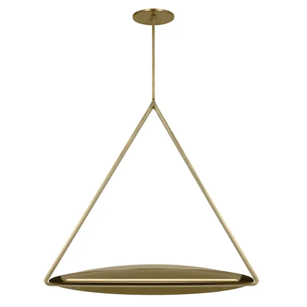 The Cymbal XL LED Pendant from Visual Comfort Modern reinvents modern LED lighting with sleek architectural designs. Large shades and linear frames create a familiar yet innovative look, with hidden light sources that intrigue and captivate. Designed by Peter Bristol, the classic shade forms and thin geometric armatures balance novelty and familiarity. These structural elements ground the fixtures architecturally and cleverly conceal the LED sources. Oversized brass shades emit soft, indirect light, enhancing people and spaces with an alluring glow.