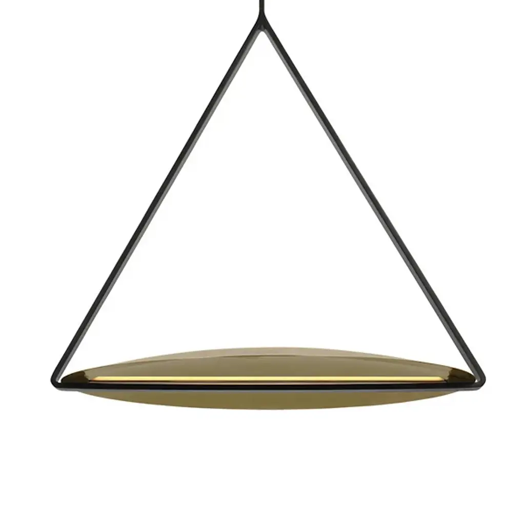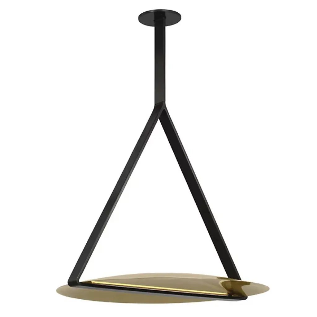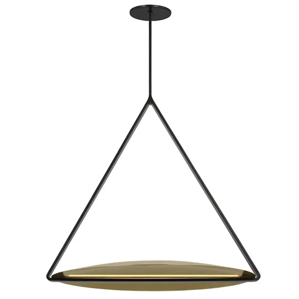 The Cymbal XL LED Pendant from Visual Comfort Modern reinvents modern LED lighting with sleek architectural designs. Large shades and linear frames create a familiar yet innovative look, with hidden light sources that intrigue and captivate. Designed by Peter Bristol, the classic shade forms and thin geometric armatures balance novelty and familiarity. These structural elements ground the fixtures architecturally and cleverly conceal the LED sources. Oversized brass shades emit soft, indirect light, enhancing people and spaces with an alluring glow.