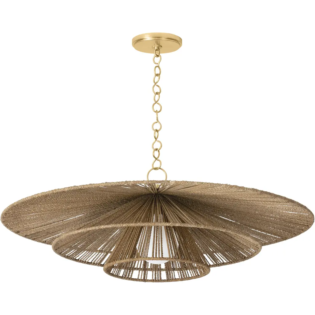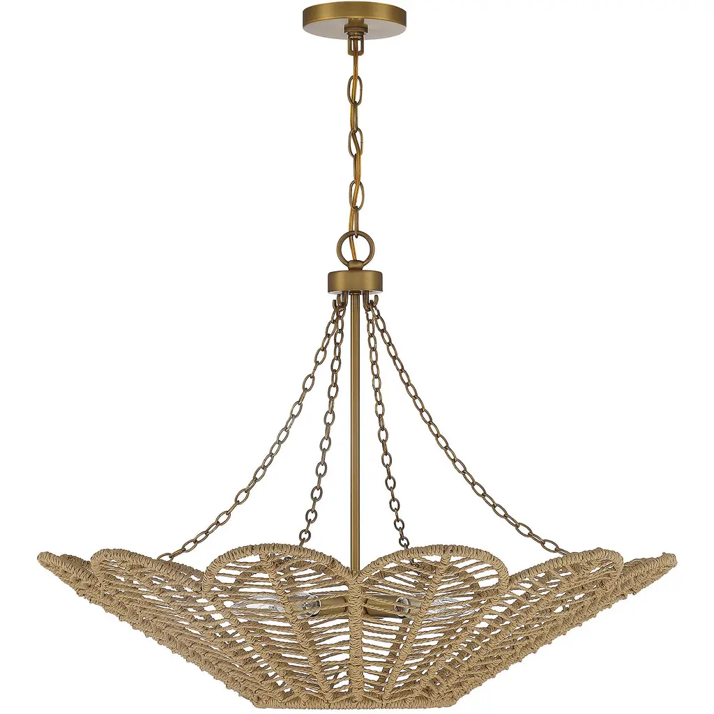 Cyperas 5 Light 30 Inch Warm Brass And Rope Pendant Ceiling Light