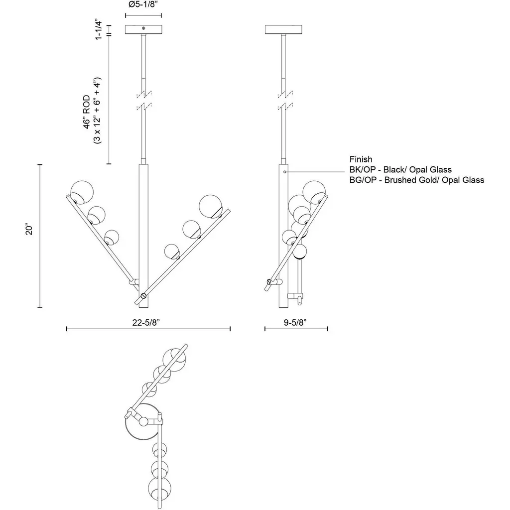 Cypress 2 Head Black/Opal Glass LED Pendant
