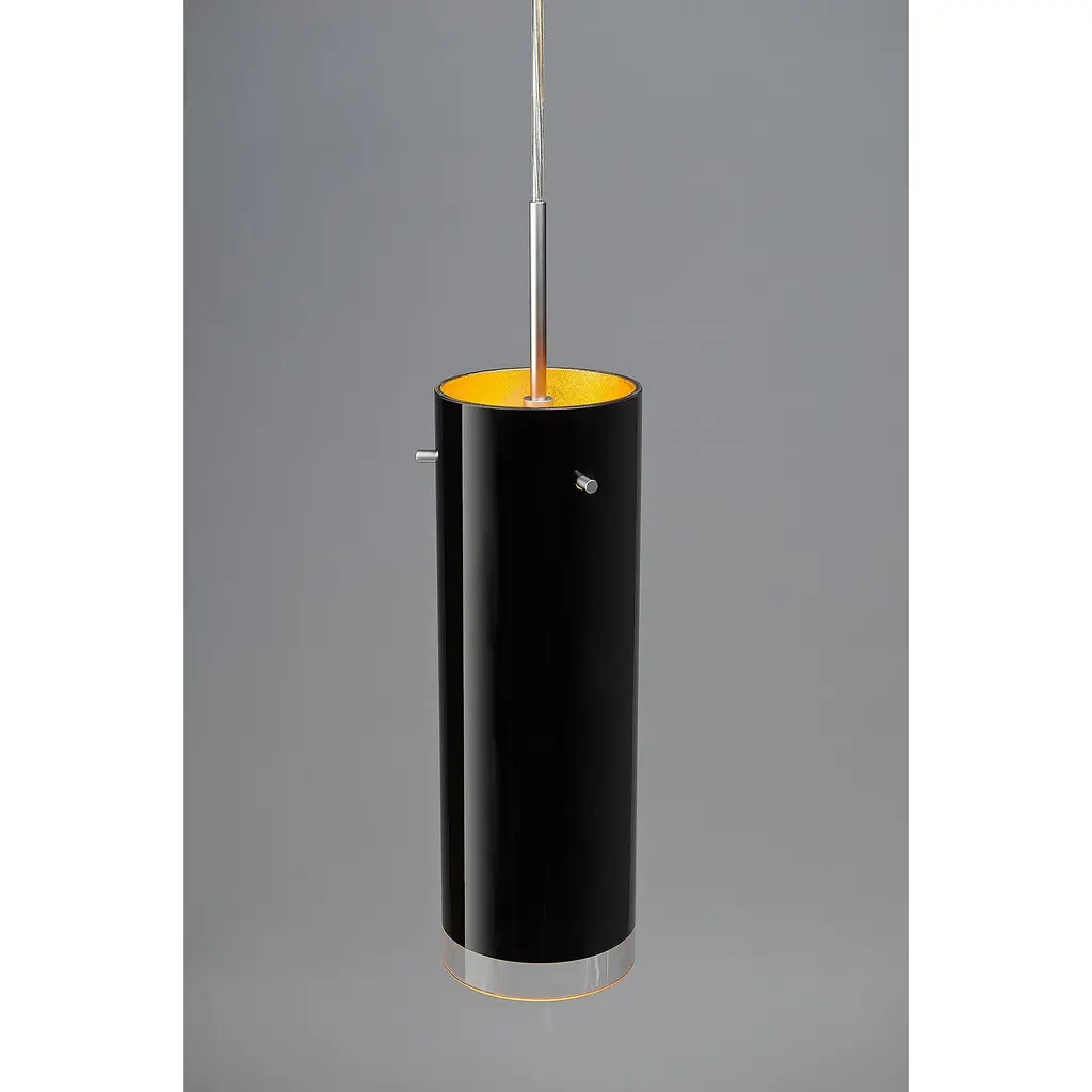 Cyrus 4 Inch Matte Chrome Pendant Ceiling Light In Black Outer/gold Inner Glass