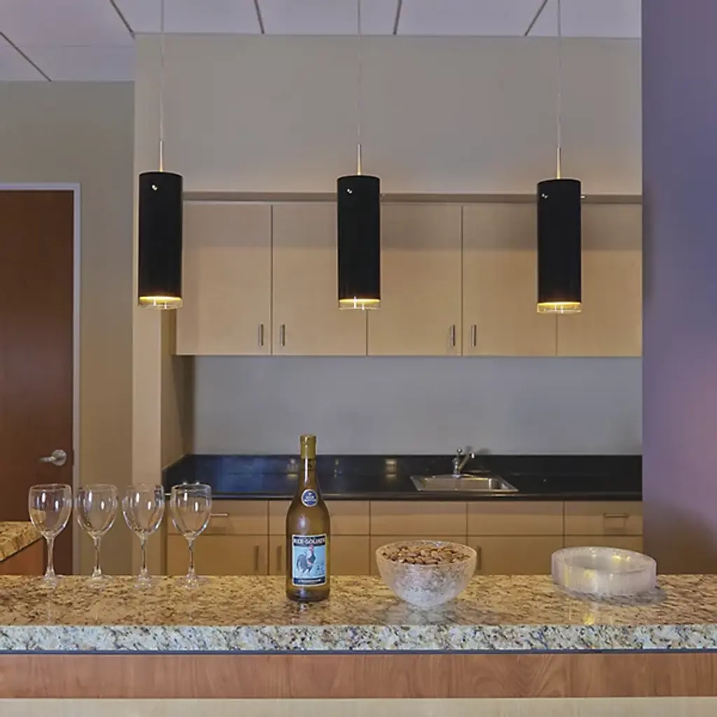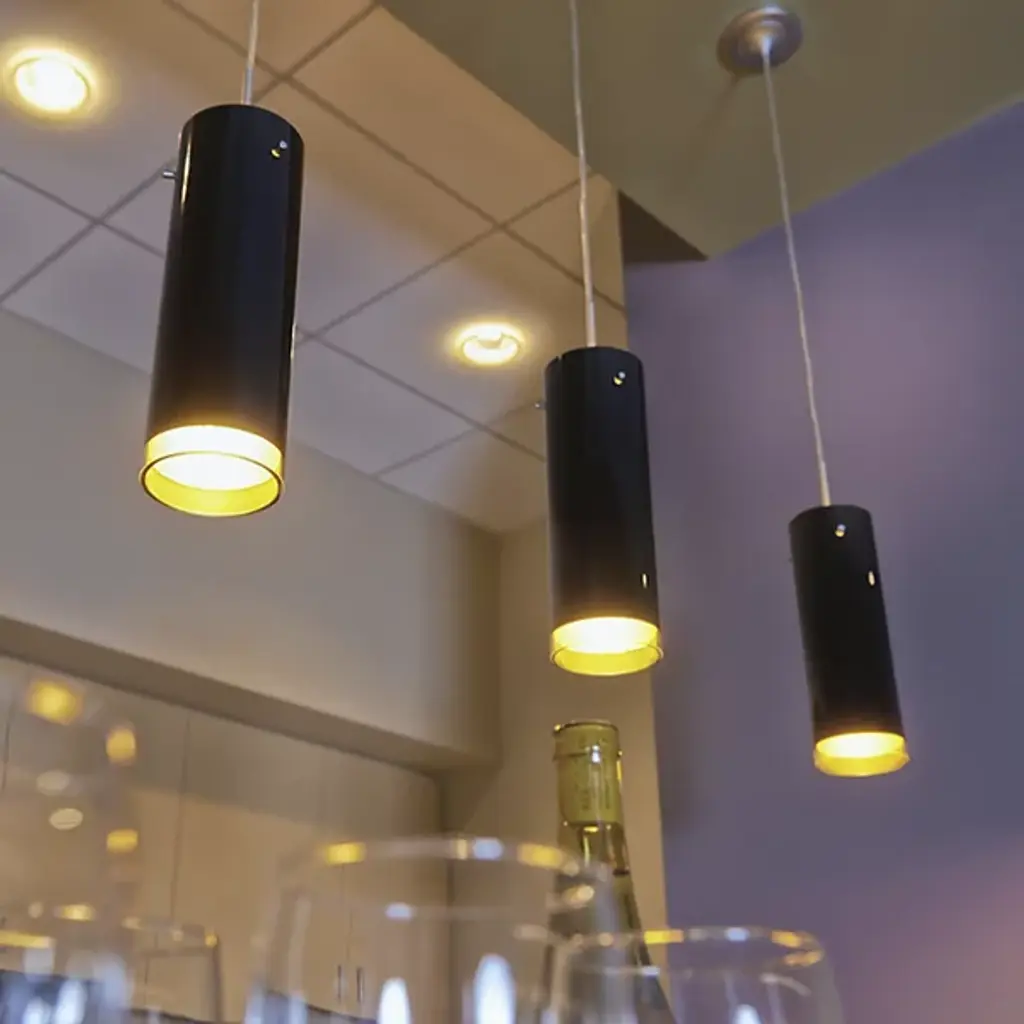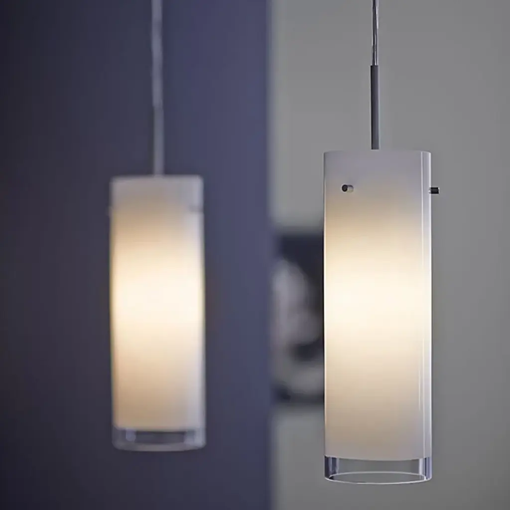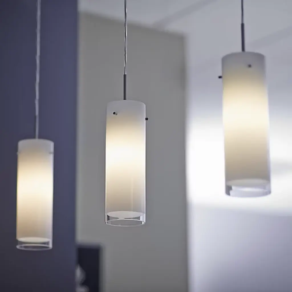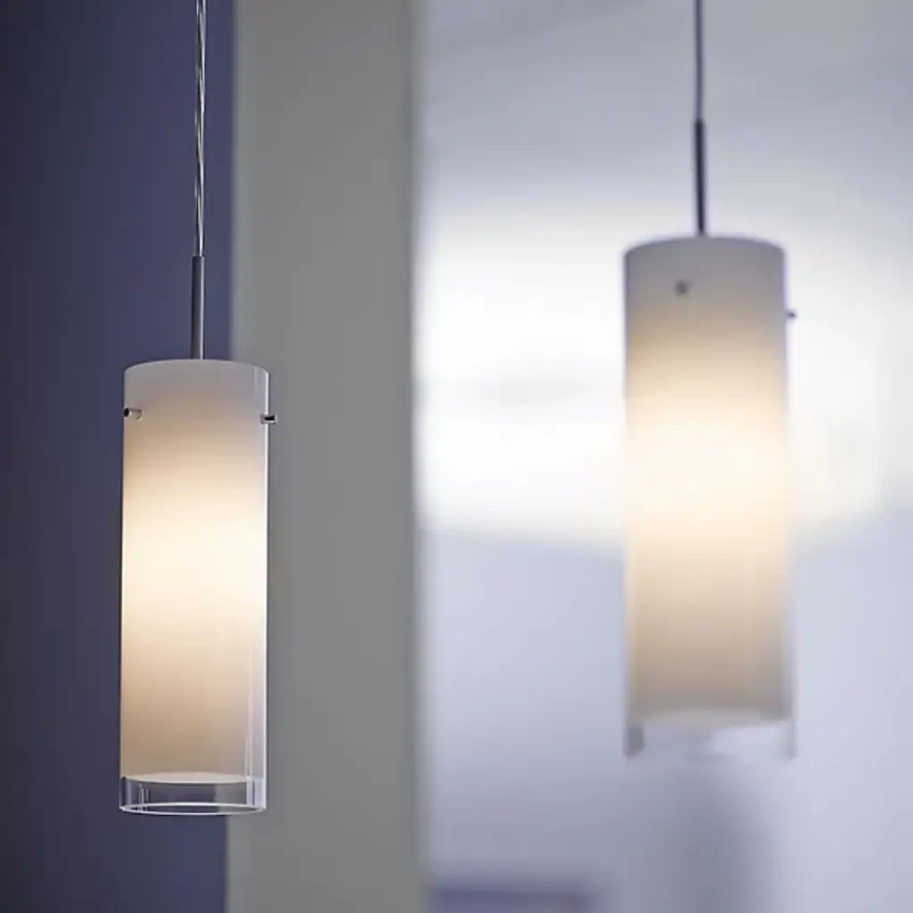 Embrace a modish modern look with clean lines of Bruck Lighting’s Cyrus Mini Pendant, boldly announcing its presence with a stately cylinder downlight of German artisan glass. A contrasting finish combines with a simple stem and cord to highlight the shade’s bold but not overpowering presence. The pendant brings direct and diffused light to warm and illuminate tables, counters, and previously overlooked corners, while its size and shape enable a blending of form and function individually or in a group.