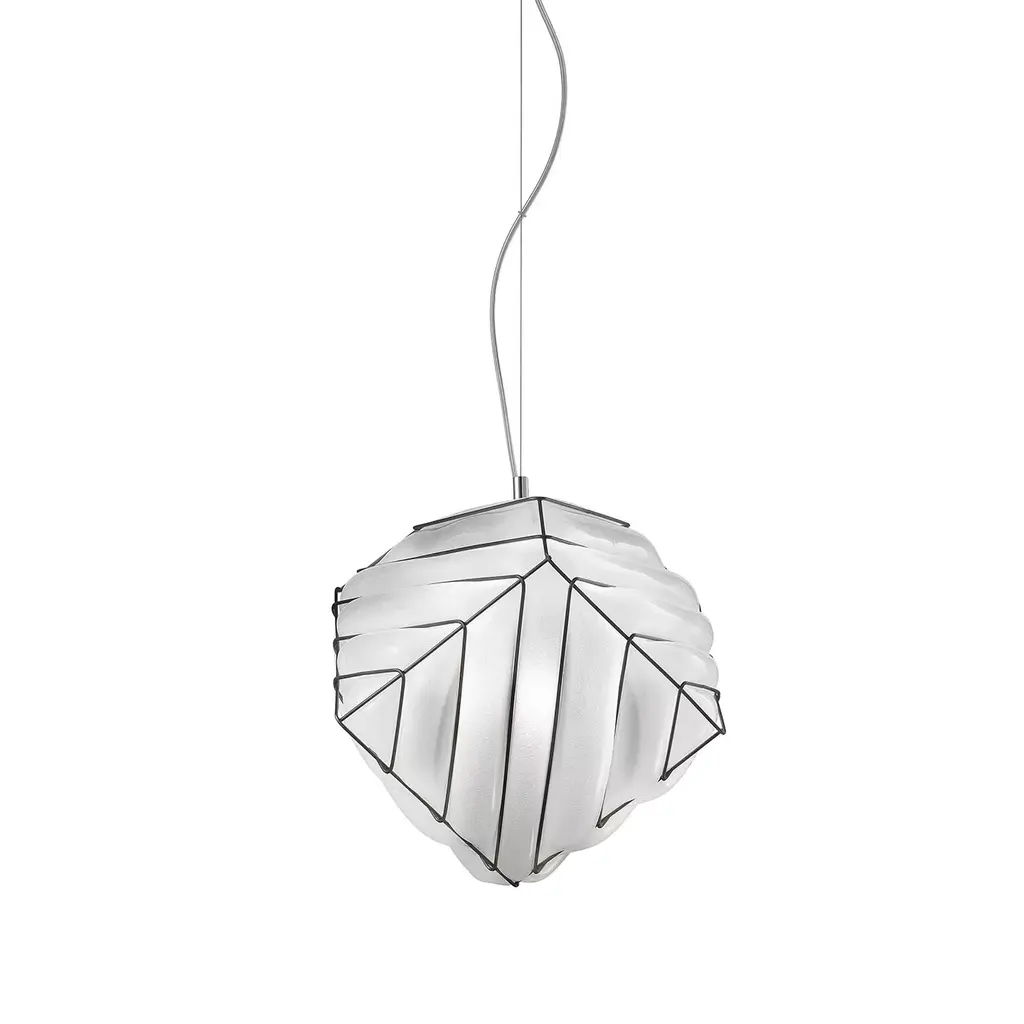 Part of the Dado series, this striking ceiling lamp will be a unique addition to any decor, particularly a contemporary one, thanks to its modern interpretation of the traditional Venetian lantern. The polished stainless steel cage, bearing a dice-like shape, seems to barely contain the white Murano glass that was mouth-blown inside of it and bulges out of this delicate structure. The light bulb is E27 max 100W (or, alternatively UL E26 max 60W). Due to handcrafting, slight changes in metal's finish may occur.