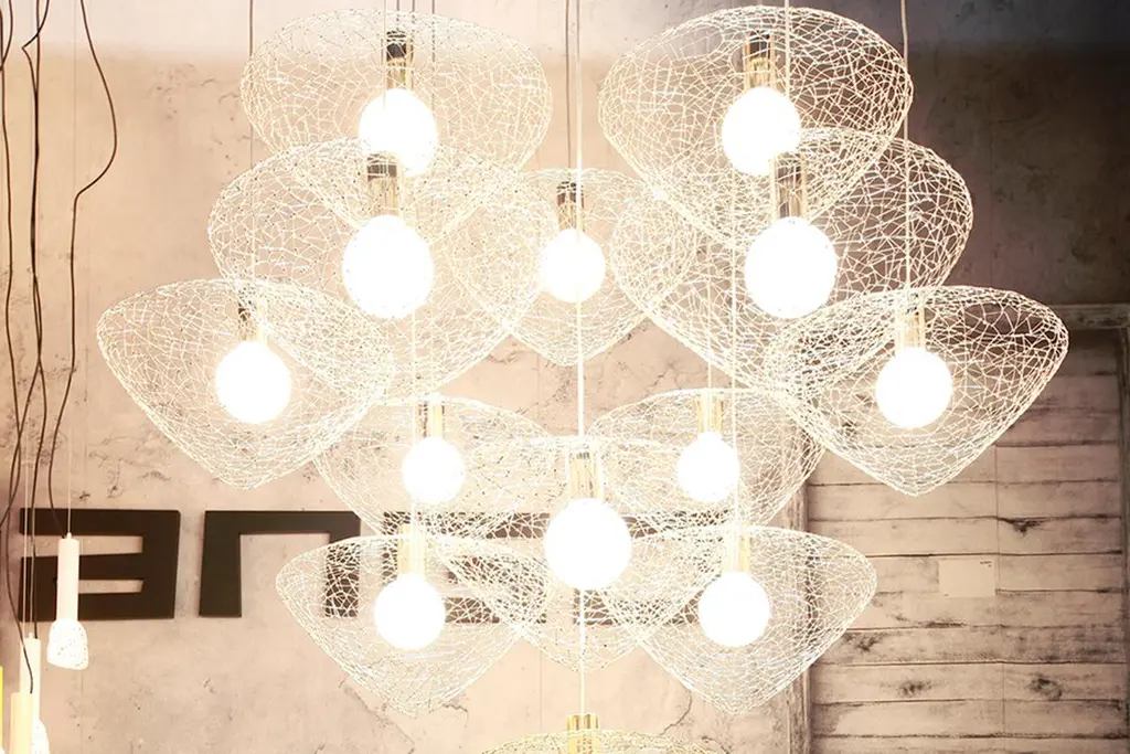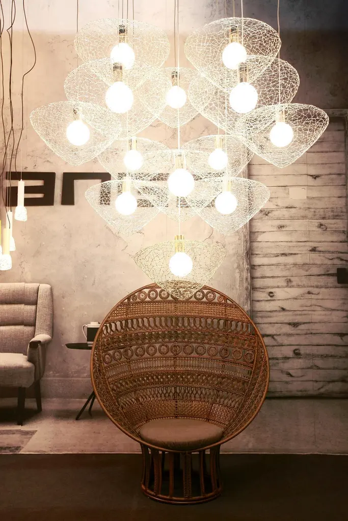 Daffy diamond is part of the Ango jewellery series of lighting within the concept “Inside-out” where myriad points of light are created within an overall form by hand welding the connecting points of the structure (that once was concealed at the core of a piece). The unique nature of the piece reveals all these nodes of light refraction as being apparently suspended in space, with differing degrees of colour and complexity. Daffy diamond pendant light size 20.5 in diameter x 13.5 in heightor 520 mm diameter x 340 mm height Light source : LED Filament G125 8W opal.Please note that due to the handmade nature of our products, slight variations in size may occur compared to the tear sheet. Additionally, colours may change over time and with usage.