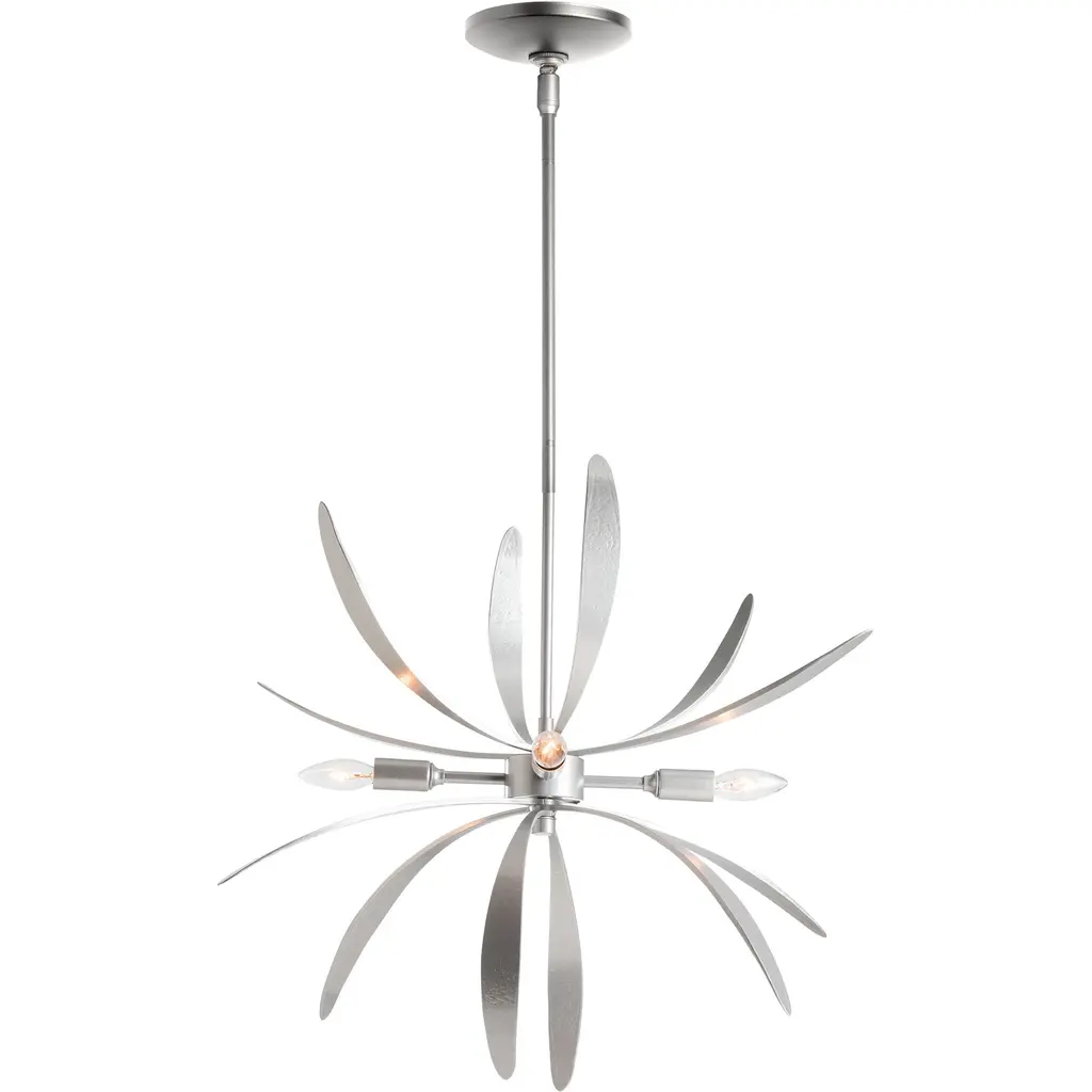 The Dahlia Mini Pendant joins the growing Dahlia Collection with a versatility all its own. Available in Vintage Platinum, it's a great option for a variety of spaces from bath to kitchen to bar to dining nook. Hang as a single or multiples, the Dahlia's "petals" and sputnik-type design bring an element of fun and elegance to its environment.