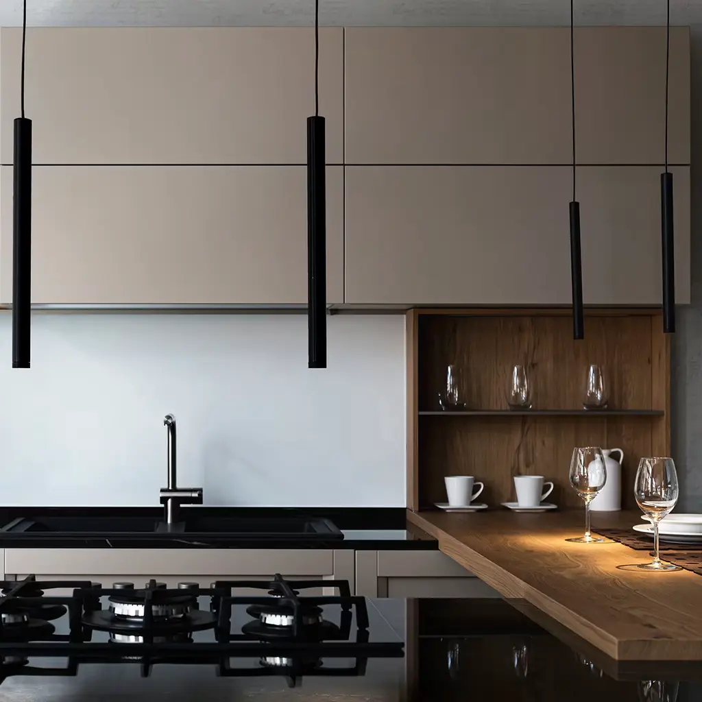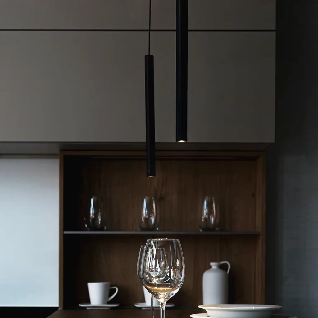 Bringing a contemporary update to any interior, especially when paired with the other pieces from the Daily Collection, this pendant lamp's unassuming style will stand out without dominating a room’s aesthetic. The light source (one LED 5W) is housed in the matte black aluminum cylinder (30cm length) and can be suspended at the desired height thanks to the 2m-long black cable. Ideal in a row of two or three above a dining table or kitchen isle, this pendant lamp is also available with a brass finish and is powered with a Proximity Light Switch.