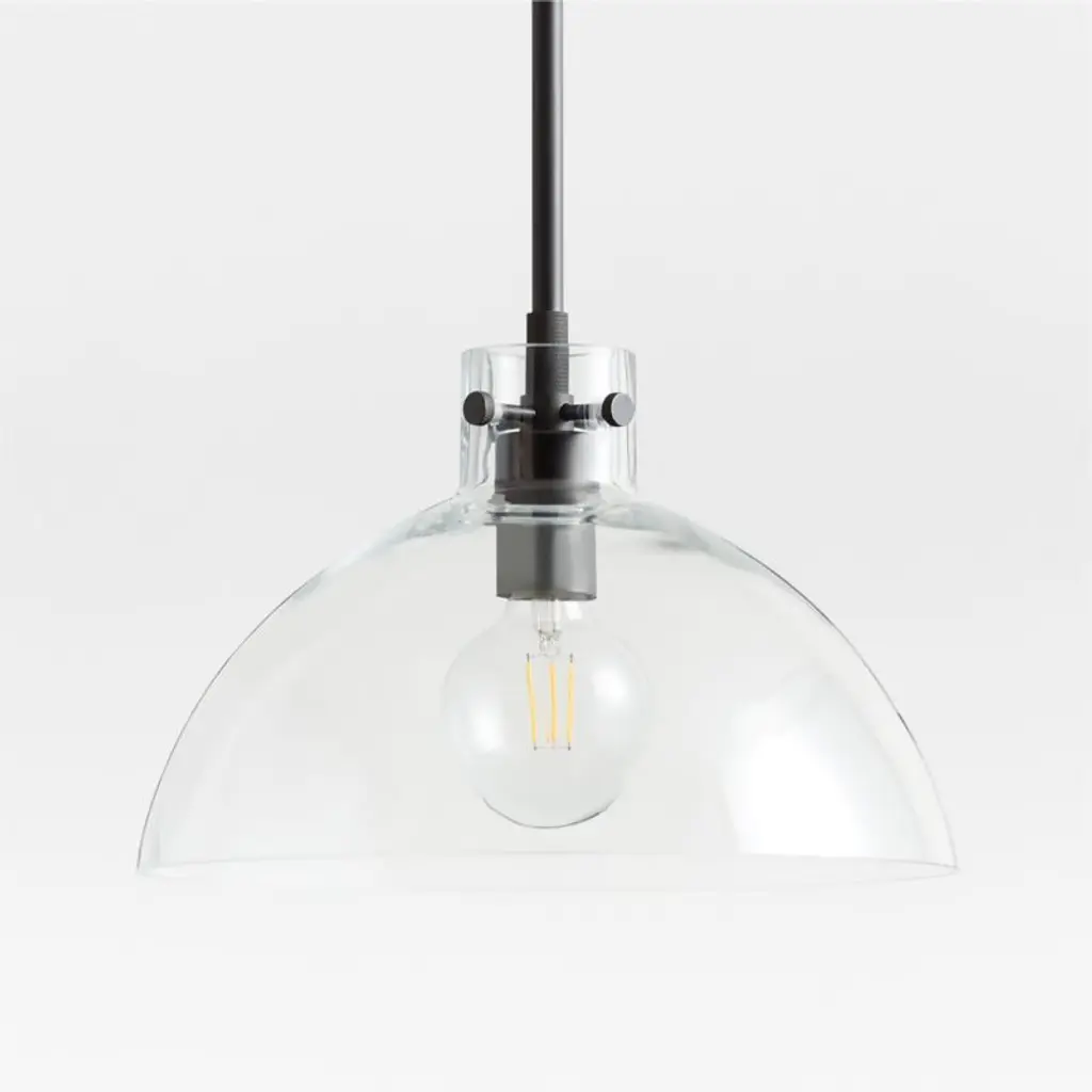 Dakota Black Pendant Light With Large Clear Glass Dome 12.5"