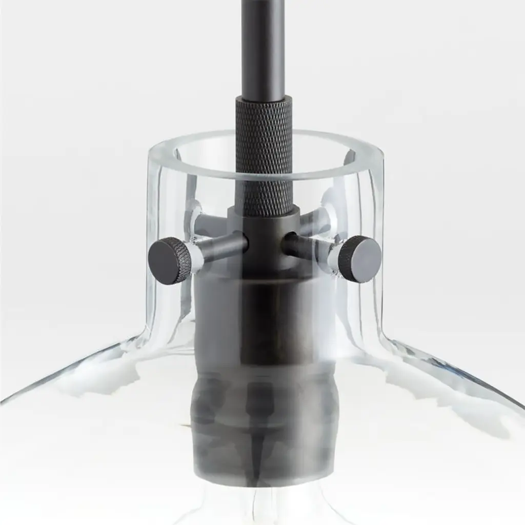 Detailed with knurling, our Dakota pendant light balances clean modernity with subtle industrial beauty. The result is a timeless ceiling light with a straightforward presence over a kitchen island, dining table or reading chair. Hand-blown by talented artisans, the large clear glass shade shapes a generous dome that shows off the black fixture. Our exclusive mix-and-match Dakota collection offers versatile lighting options with a custom feel.