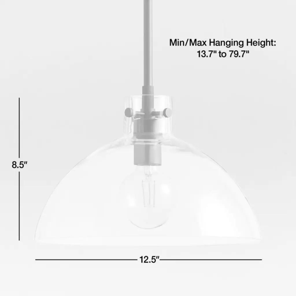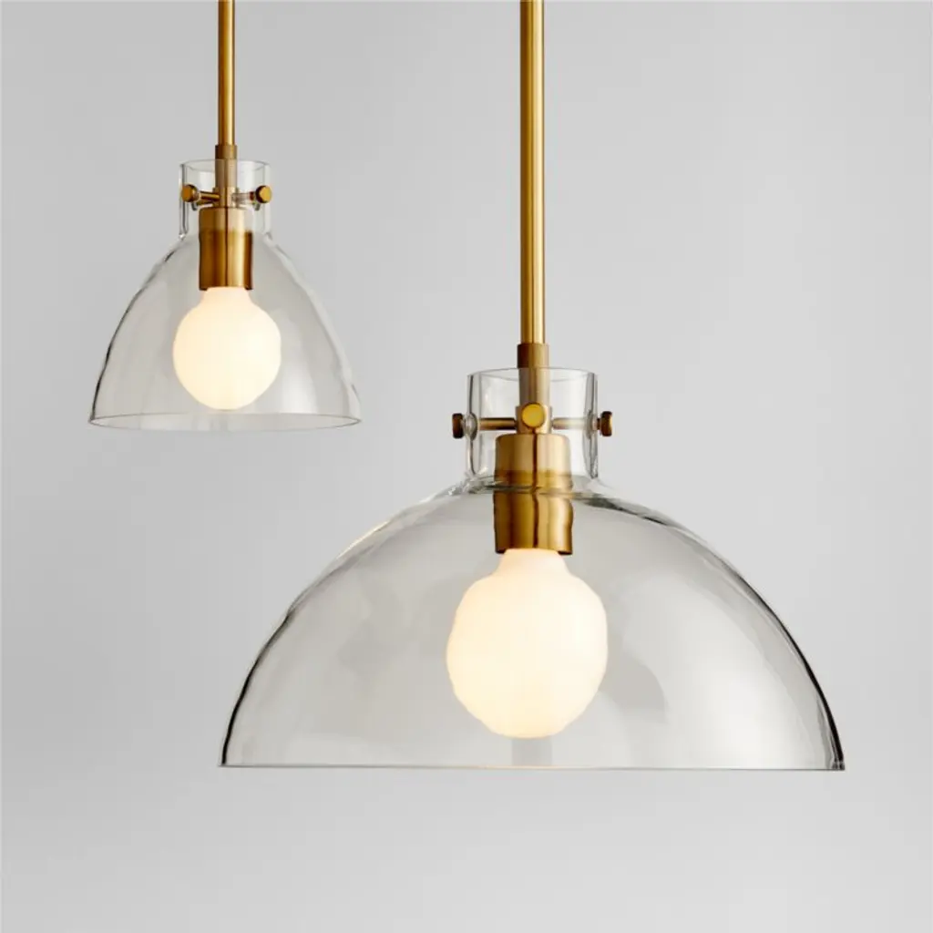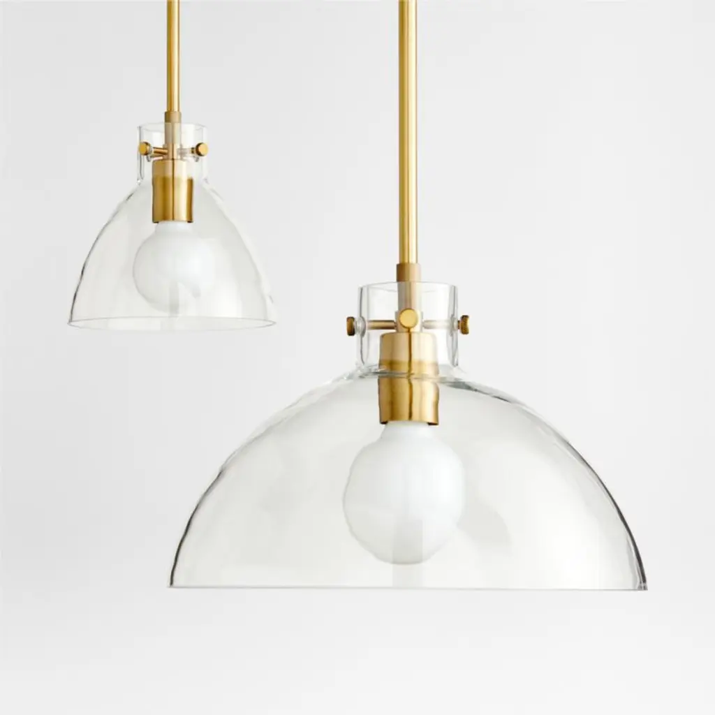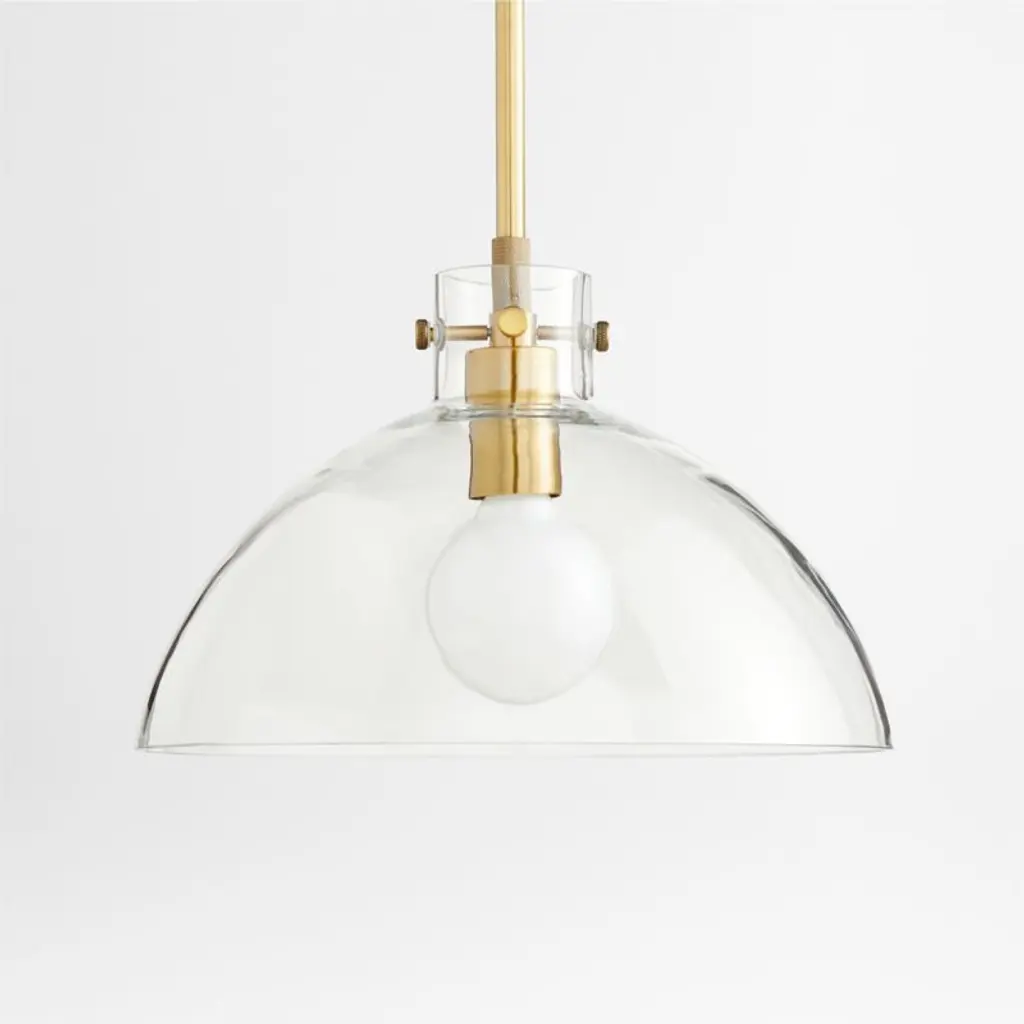 Dakota Brass Pendant Light With Large Clear Glass Dome 12.5"