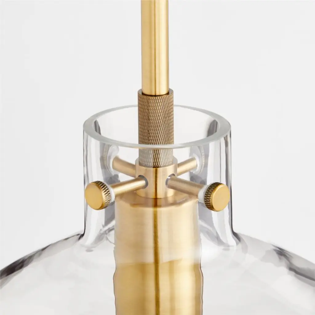 Detailed with oversized knurled screws, our Dakota pendant light balances clean modernity with subtle industrial beauty. The result is a timeless ceiling light with a straightforward presence over a kitchen island, dining table or reading chair. Hand-blown by talented artisans, the large clear glass shade shapes a generous dome that shows off the gleaming brass fixture and your choice of bulb. Our exclusive mix-and-match Dakota collection offers versatile lighting options with a custom feel.