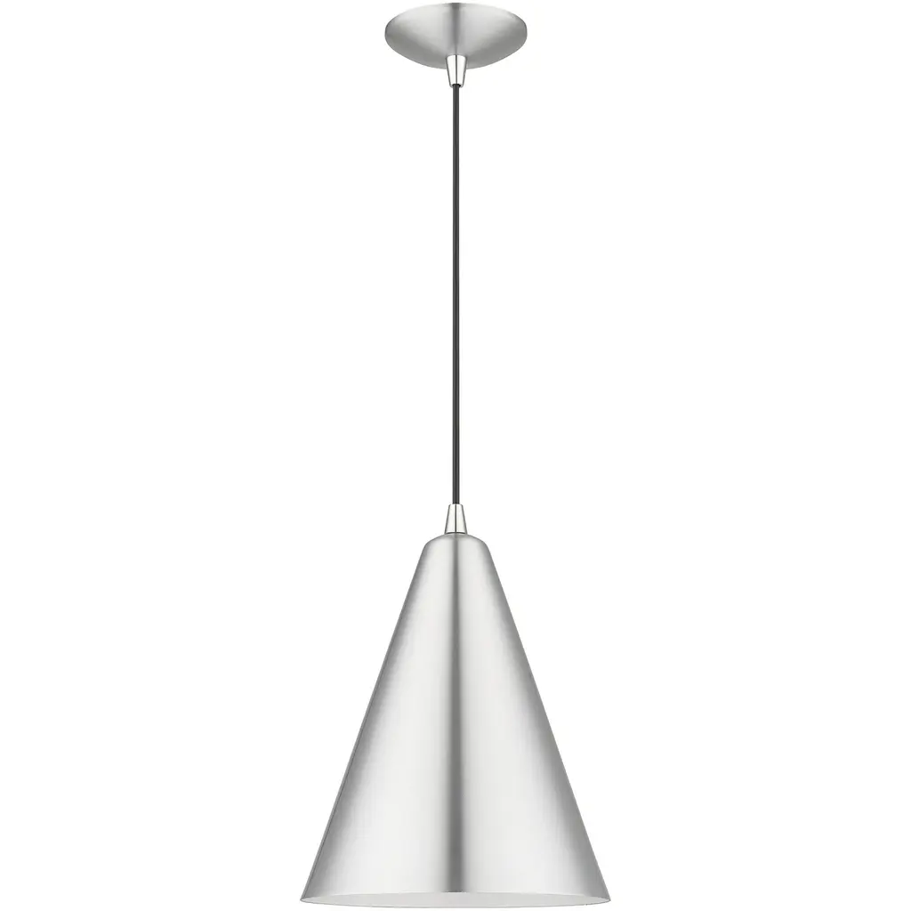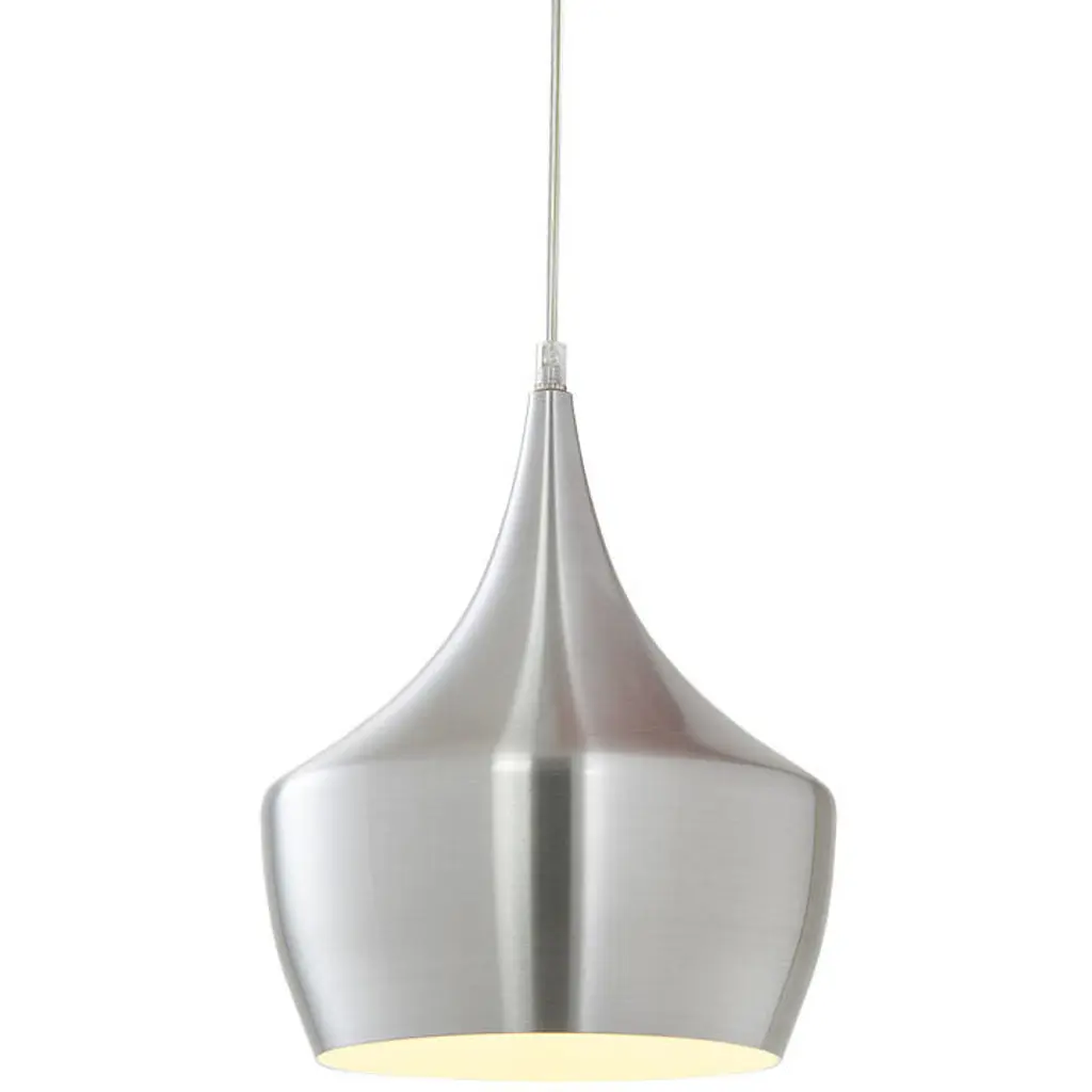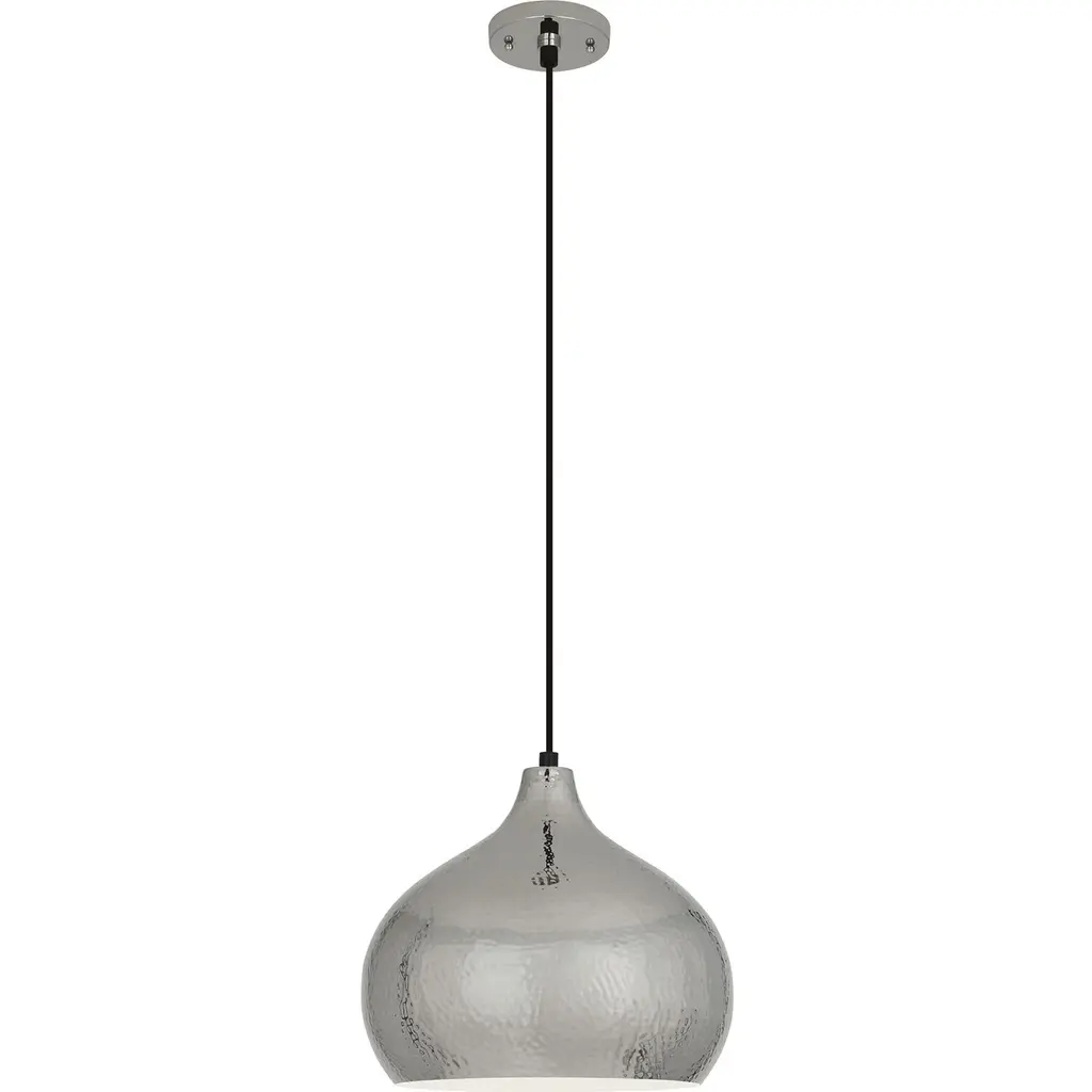 Get lost in the sea of details or the picture-perfect stream of light created by the Dal Mini Pendant from Robert Abbey. The pendant communicates the stylish, refined character of the home. Its slender suspension and tapered shape look natural as part of a series over a table. Crafted in a tall cone, the metal shade focuses the eyes on the intricate notes of the hammered details. These details shimmer with only a brief hint of ambient light. Nestling inside to reduce glare, the lamping beams down a cast light that creates focus in the room.