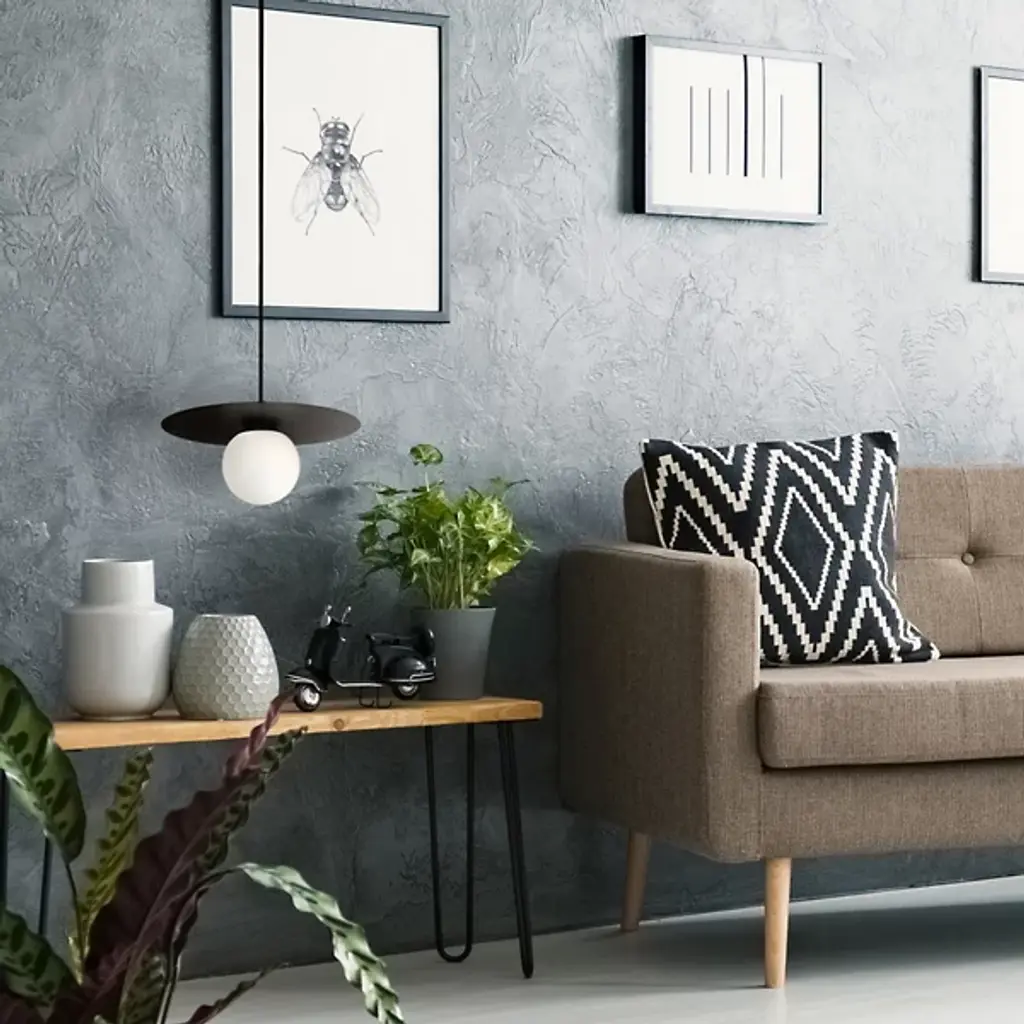 The Dal Pendant from Robert Abbey is a refined piece raining calm light and lively detail over one’s room. It charms with a clean, modern composition. The piece’s compact canopy and cord suspension make it easy to admire as part of a series over a table. Sharing the same finish as the canopy, the metal disc below surprises on a closer inspection with an edge to edge application of hammered details. A glass globe rests on top as if exiting a portal. The bright globe produces a soft down glow free from glare that scatters as highlights on the hammered disc.
