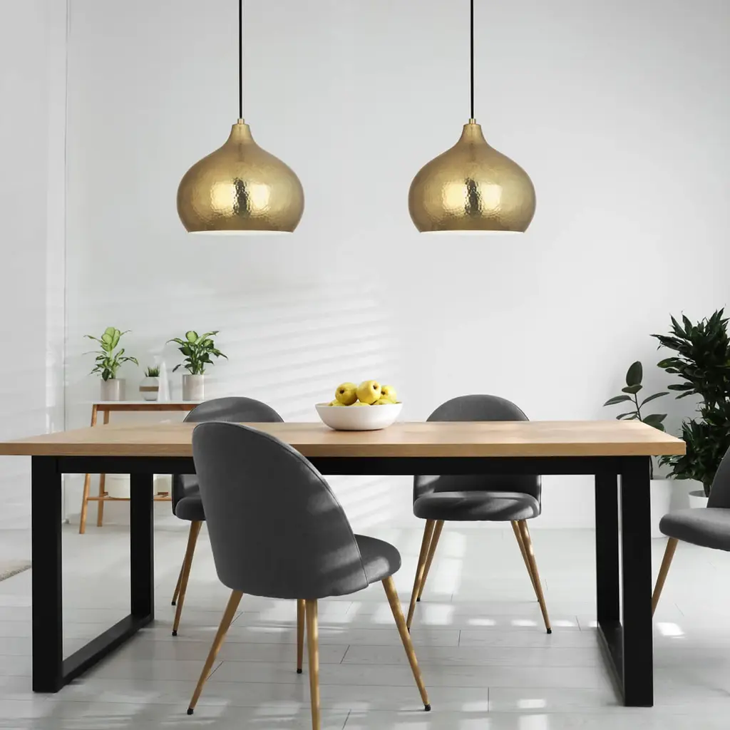 The Dal Pendant Light from Robert Abbey showcases exquisite craftsmanship through ancient hammering techniques, creating a captivating play of light and texture. Its elegantly curved metal shade, finished with delicate hammered accents, directs a focused downlight while minimizing side glare. Suspended from a slender cord with a discreet canopy, this pendant complements both refined and eclectic interiors and can be grouped effortlessly for a striking visual rhythm. A sophisticated choice that balances artistry and function with timeless appeal. Highlights