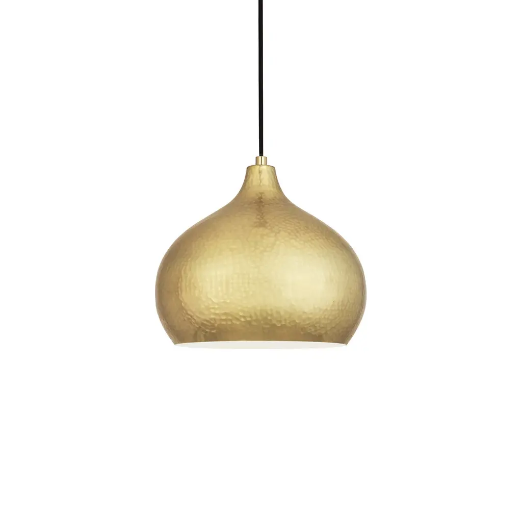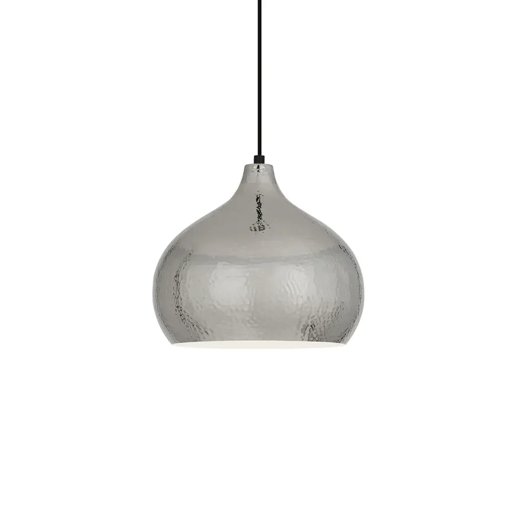 The Dal Pendant Light from Robert Abbey showcases exquisite craftsmanship through ancient hammering techniques, creating a captivating play of light and texture. Its elegantly curved metal shade, finished with delicate hammered accents, directs a focused downlight while minimizing side glare. Suspended from a slender cord with a discreet canopy, this pendant complements both refined and eclectic interiors and can be grouped effortlessly for a striking visual rhythm. A sophisticated choice that balances artistry and function with timeless appeal. Highlights