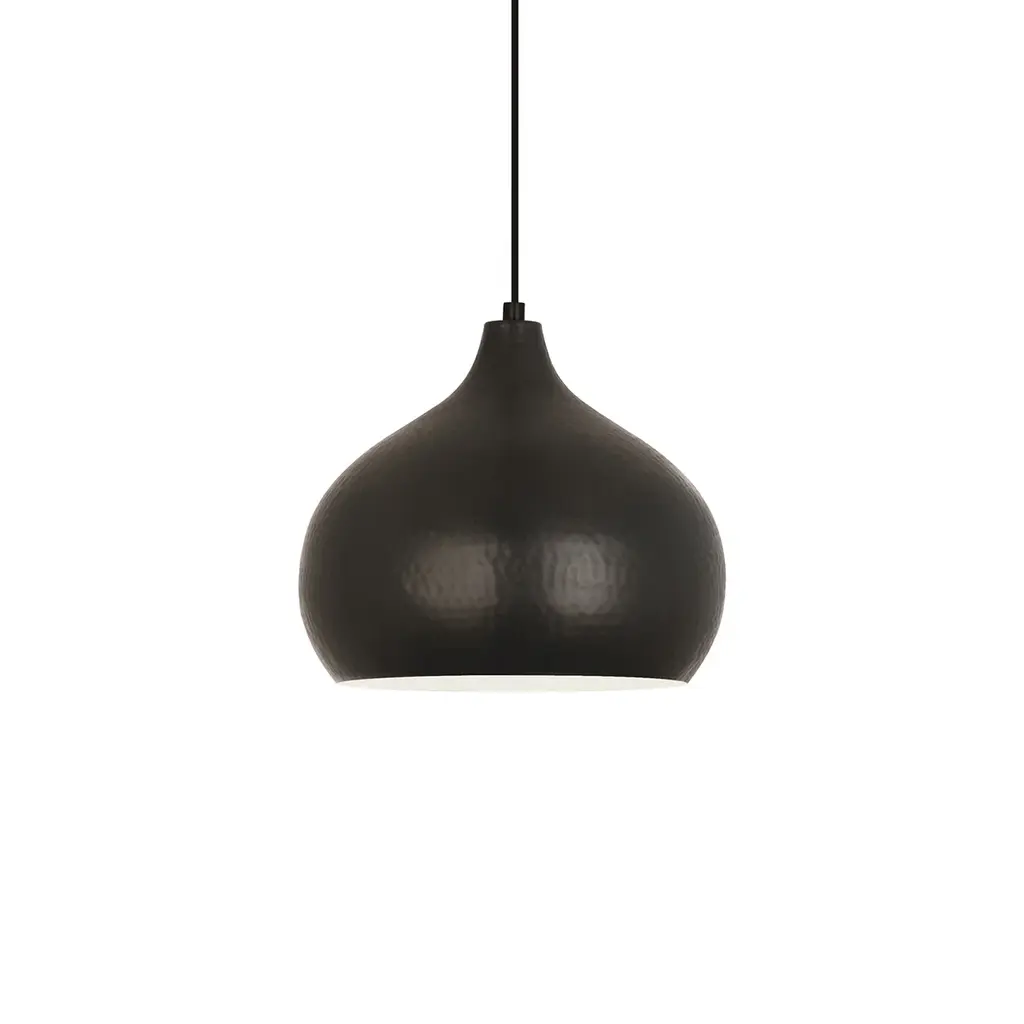 The Dal Pendant Light from Robert Abbey showcases exquisite craftsmanship through ancient hammering techniques, creating a captivating play of light and texture. Its elegantly curved metal shade, finished with delicate hammered accents, directs a focused downlight while minimizing side glare. Suspended from a slender cord with a discreet canopy, this pendant complements both refined and eclectic interiors and can be grouped effortlessly for a striking visual rhythm. A sophisticated choice that balances artistry and function with timeless appeal. Highlights