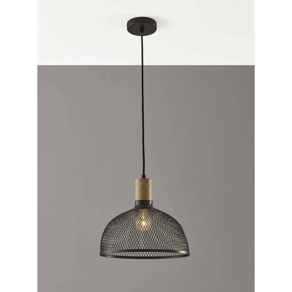 Add a dramatic industrial element to your dining or living space with the Dale Large Pendant. A contemporary black metal mesh shade is paired with a natural rubber wood accent resulting in a modern industrial style with hints of scandinavian influence.This style looks great with all bulb types. Use a vintage edison bulb for soft, mood lighting or an LED bulb for efficient overhead light. With 72 inched of black fabric covered cord, this pendant can be adjusted to fit your ceiling height.