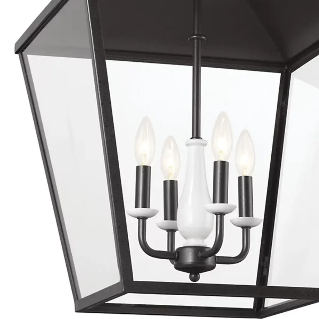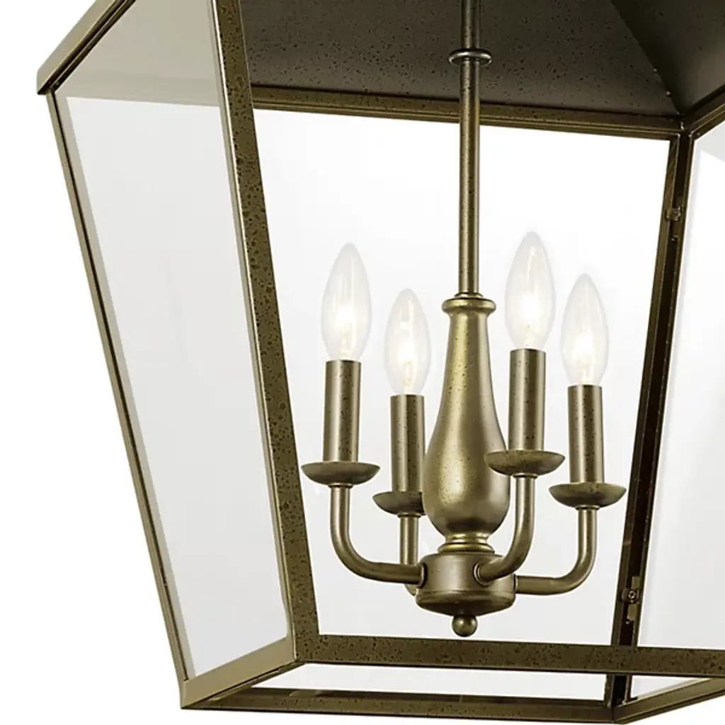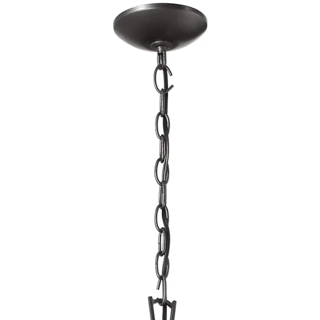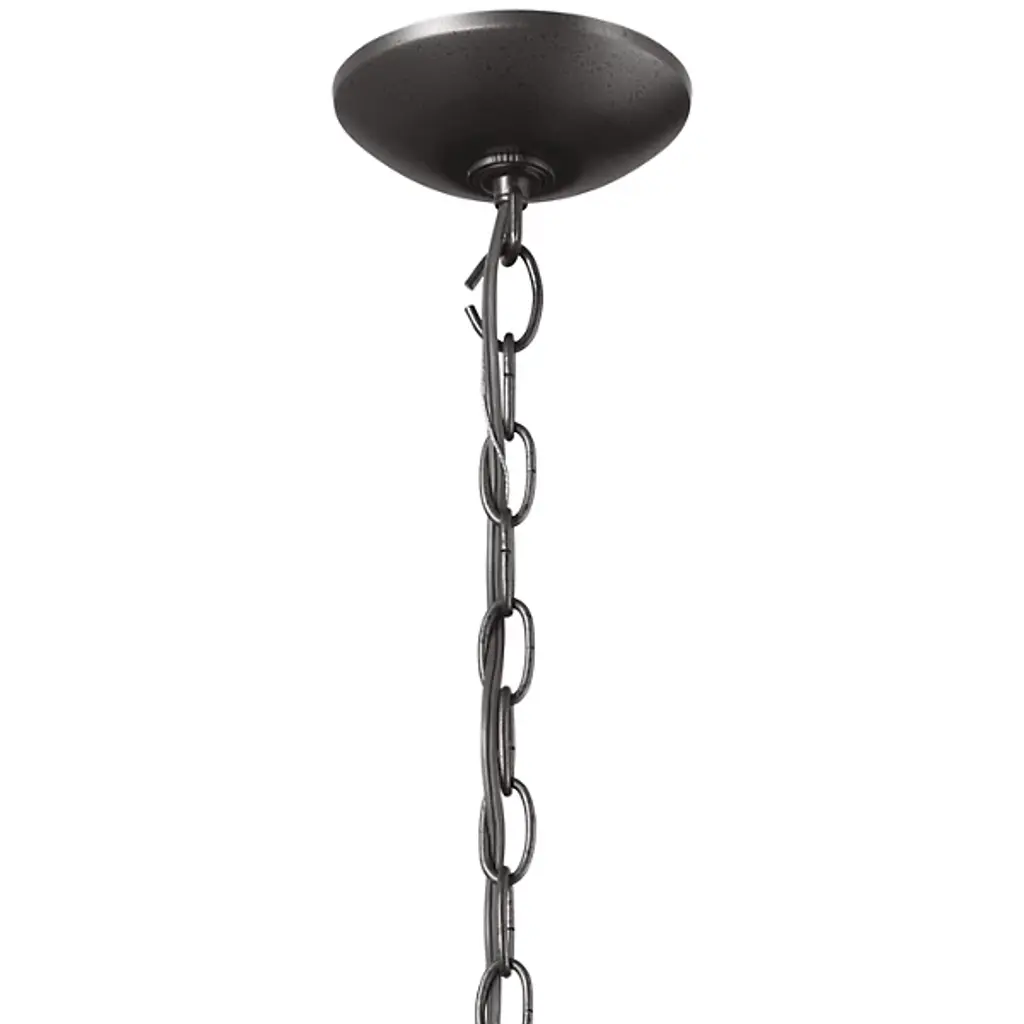 Give your living space a charming sensibility with the Dame Pendant by Kichler. Fine steel has been worked into a lantern-style prism. The pendant’s frame is lined with panes of glass that elegantly slant. Behind these panes rests a candelabra boasting slender arms topped with flame-shaped bulbs. A centrally placed addendum sits amid the candelabra through its attachment to a downrod. Your pendant maintains midair suspension by hanging from a lovely chain of links. This pendant’s overhead orientation allows vibrant light to fill your surroundings with ease.