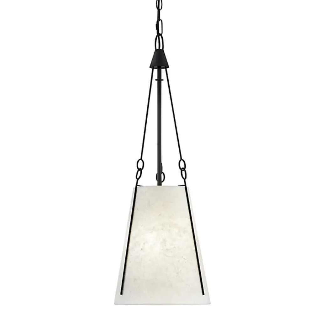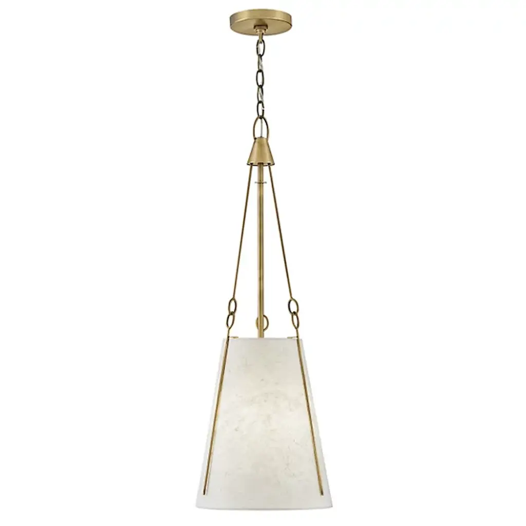 The Danvers Pendant from Hinkley unites transitional style and functionality. Illuminated by a vibrant LED, this pendant offers a chic aesthetic. It is secured by a downrod and a linked chain attached to a ceiling canopy, bringing a touch of elegance to your space. Crafted for durability, Danvers enhances your interior with its radiant glow and is built to last. This sloped-ceiling adaptable fixture is accentuated with a gorgeous shade of handmade paper.