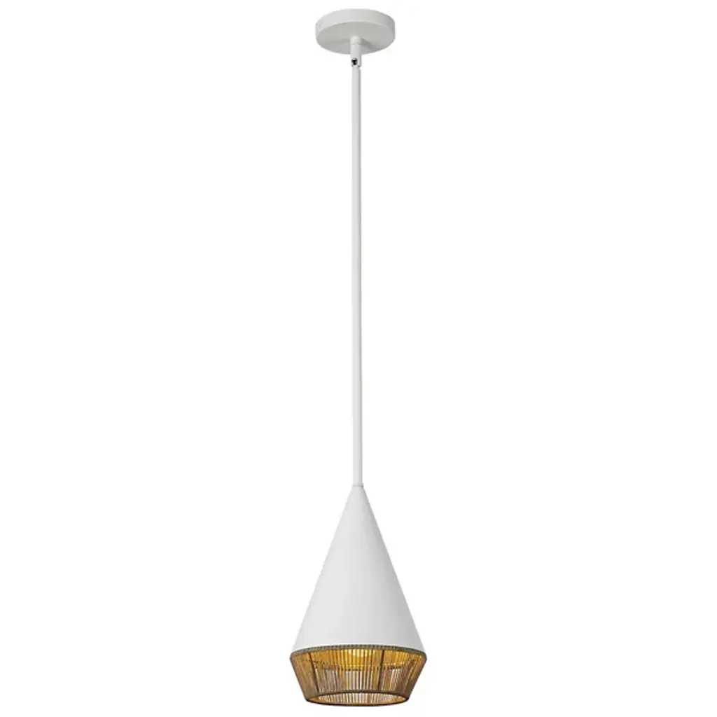 Enrich your space with the Daphne Mini Pendant from Alora Mood, a captivating lighting solution seamlessly blending coastal and Bohemian styles for a touch of elegance. With its conical framework, this pendant brings a distinctive visual aesthetic, capturing the essence of modern design with eclectic flair. Crafted with precision using steel and cotton rope materials, Daphne adds texture and warmth to your setting. Designed for versatility, it suits indoor spaces or covered outdoor patios, extending its charm beyond interior walls.