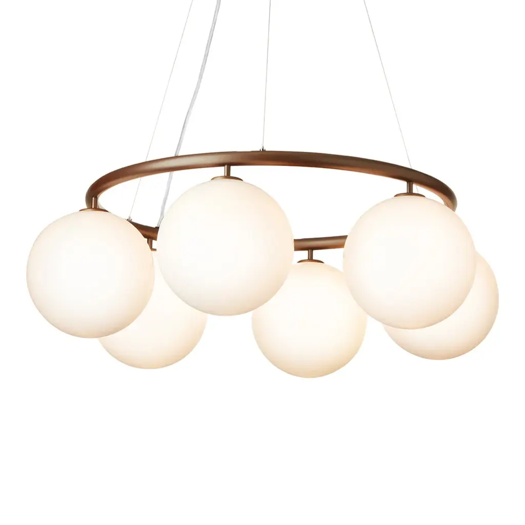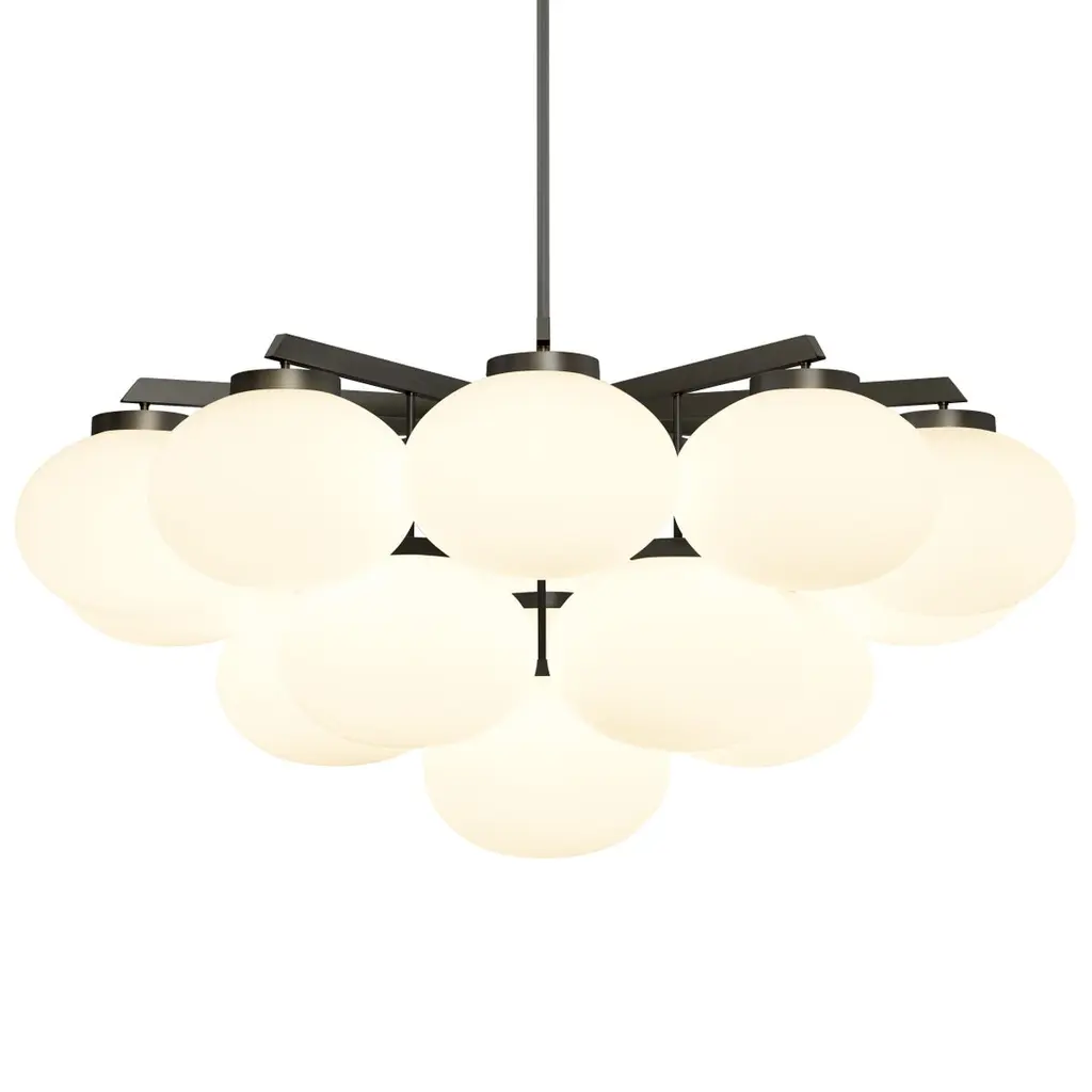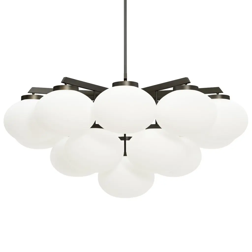 Dark bronze large cloudesley pendant lamp by CTO LightingMaterials: dark bronze with matt opal glass shadesDimensions: H 58 x W 130 cmAll our lamps can be wired according to each country. If sold to the USA it will be wired for the USA for instance.16 x E26, 60w max (or 8w LED 2700k)weight 41kg (90.4lbs)supplied with 1000mm drop rod as standard (adjustable on site)additional drop rod at $125 per 1000mmfor installation a minimum drop rod of 50mm (2”) is required, maximum 3000mmno bulbs suppliedmounts over 4” junction boxadditional support around junction box required for installationFounded in 1998 by Chris and Clare Turner, CTO Lighting launched their first collection on the guiding principles of designing lights of uncompromising quality, using only the finest materials and working with elite British craftsmen. This collection of lighting symbolised elegance and the excellence of British design and manufacturing; the benchmark for all future collections.