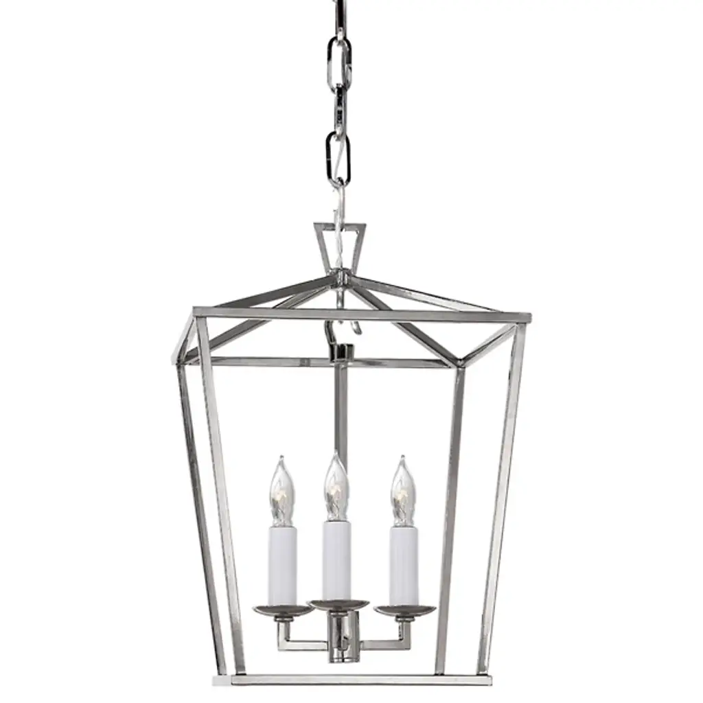 The Visual Comfort Signature, formerly known as Visual Comfort, Darlana Mini Lantern Pendant is a classic shape in a small and compact size. Exposed bulbs illuminate from in the center of a open box design - the shape inspired by oil lanterns of a bygone era. Classic yet chic, use a few over a kitchen island for a classic aesthetic with historical context.