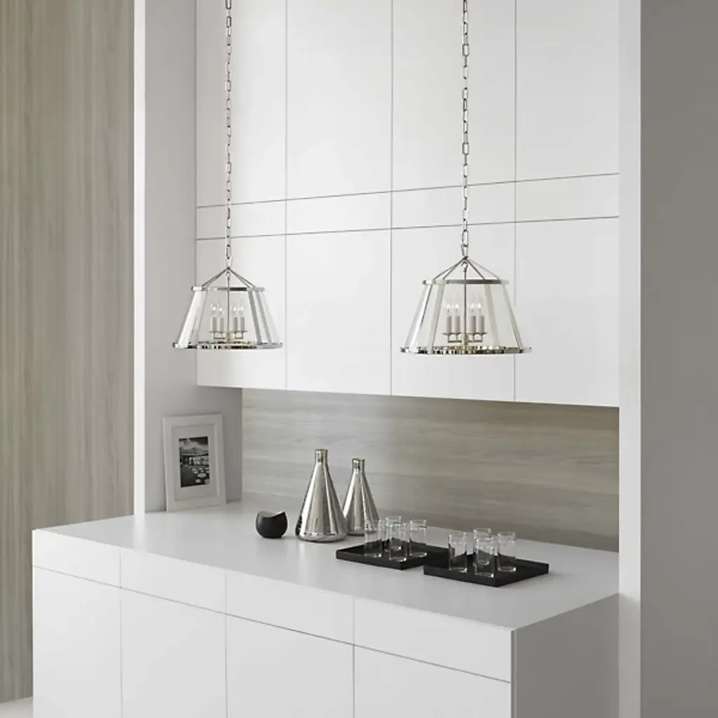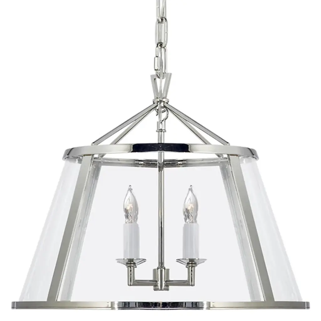Visual Comfort Signature, formerly known as Visual Comfort,’s Darlana Pendant brings life to interior spaces as a huddle of flame tip bulbs fill the room with atmosphere. A Clear shade filled with 4 candelabra bulbs creates a warm, ambient light that illuminates surrounding decor and sets the tone for your interior. Line several Darlana Pendants down a kitchen island or dining table and create an inviting space with a darling lighting statement.