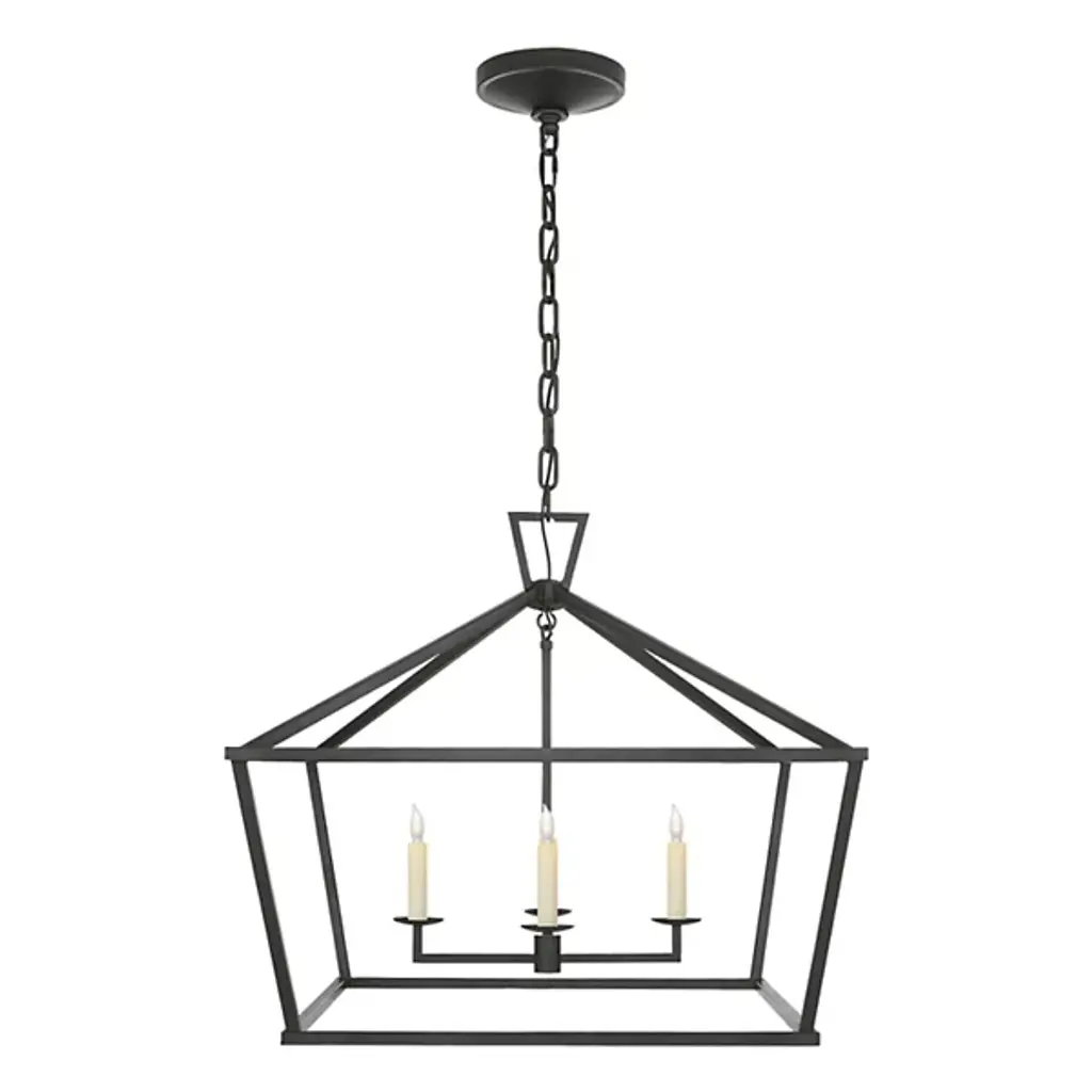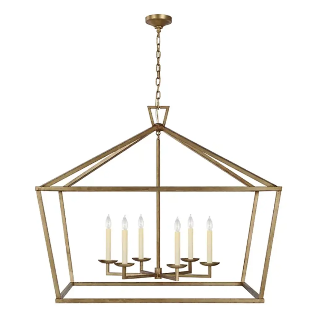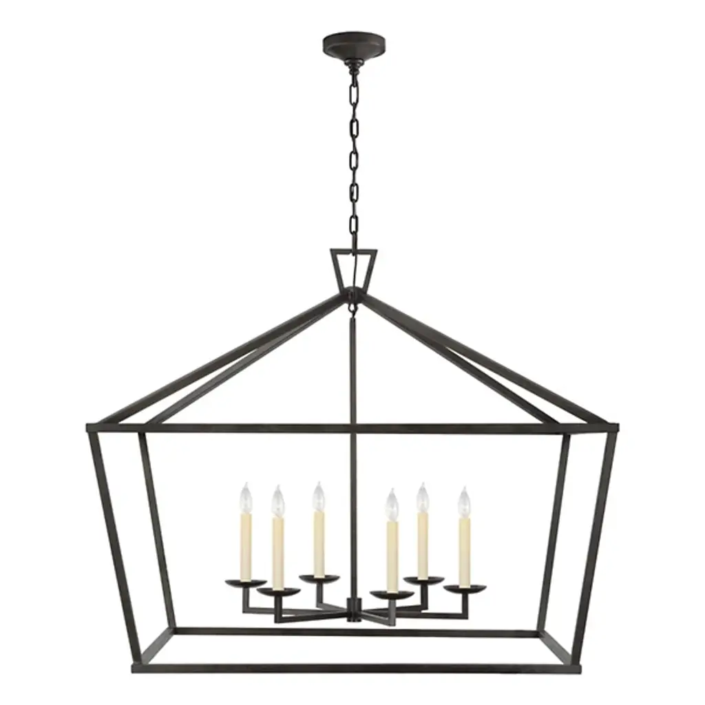 Clean, bountiful lighting informed by tradition. Feel at ease while under the open, tapered outline of the Darlana Wide Lantern Pendant from Visual Comfort Signature, formerly known as Visual Comfort, This transitional piece refines the familiar faceted lantern. It suggests a traditional lantern’s hood with a pointy top and an elegant finial. The metal framework tapers below, putting the focus on the elegant arrangement of arms inside. The pieces say classic with a candle-inspired group of slender lamping. Candelabra bulbs spring out with pointy notes to deliver an elegant shimmer and a radiant light.